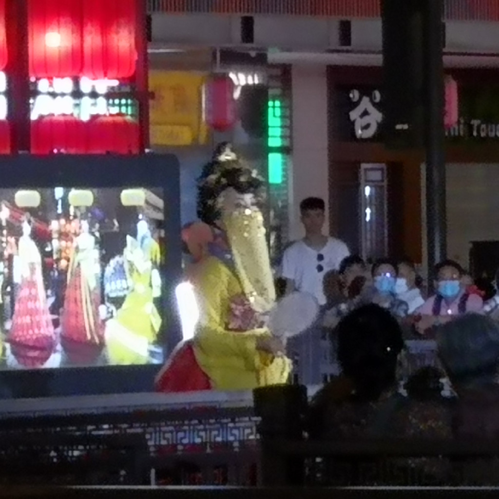 走回去时间正好,好多人在迂回排队,原来是要近距离观看不倒翁小姐姐表演和拍照,不想排队,就在外围看吧,用手机拉近镜头也可以看的很清楚,就是拍照难免会有很多人作为背景。