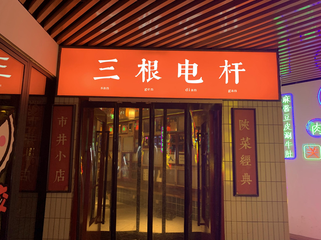 现在要去吃晚饭了,坐车到鼓楼找到网红的三根电杆陕菜馆,正好9点,进门就看到好多人在等待,门前引导员说9点半下班,9点就不再发号了,有点懵,第一次遇到9点就停止营业的餐饮,再三给她说我们是外地特地来吃的,还不错给了最后一个号,坐在旁边等着,老公有些心急,打算再去找其他地方,我坚决不同意,既然给了号就肯定可以吃到,实在不行我外卖打包也可以啊。