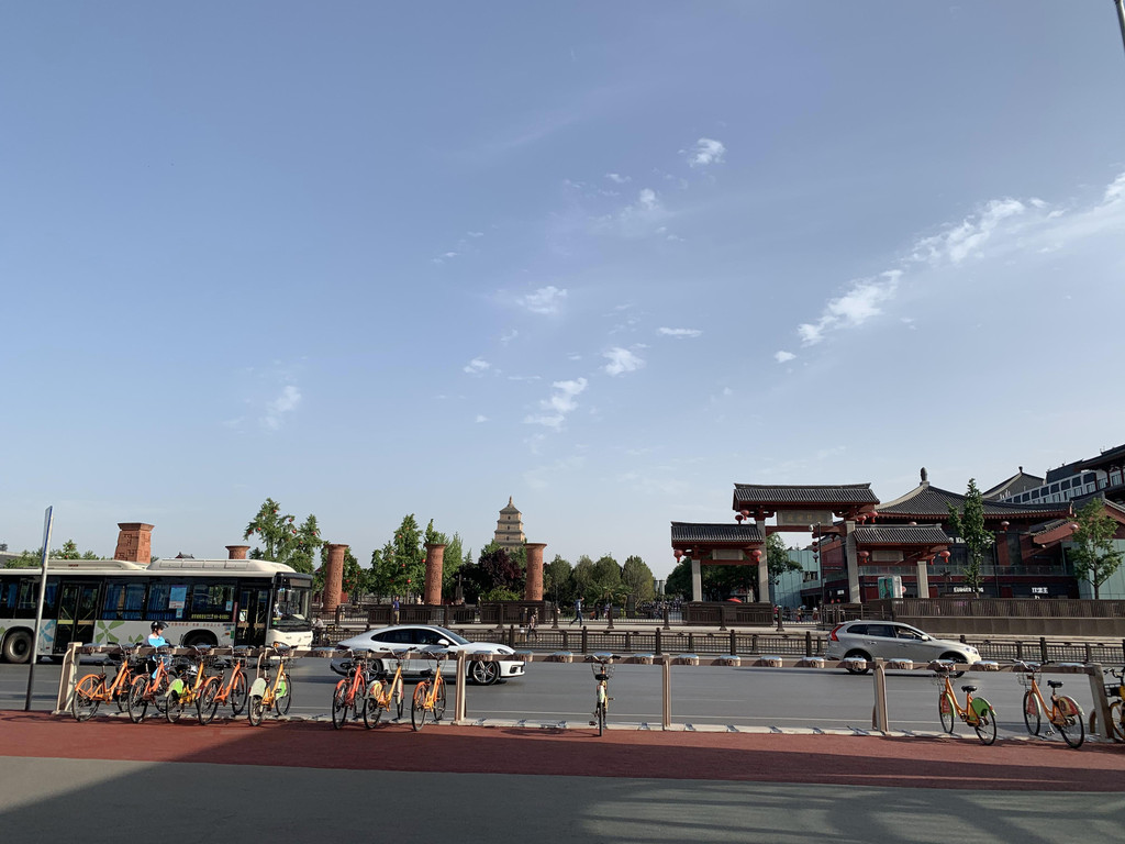 从茶馆出来已是太阳西下,距离不远就是机场大巴钟楼饭店乘车点,买了些肉夹馍、甑糕带着去机场吃,西安行程结束。