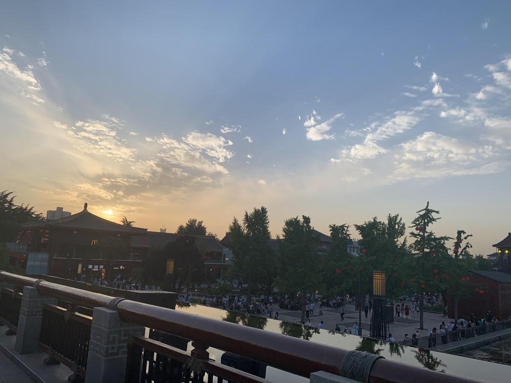 天色渐渐暗了下来,周围景色很美,步行的距离不是太近,两个人边走边逛,也没有觉得太累。到了大唐芙蓉园预约门票,竟然没有了,果然是一系列的错过啊,这篇游记是不是应该取名为一次不断错过的西安之旅?当然这个景点本来也不在计划之中,还是返回去看不倒翁小姐姐吧。