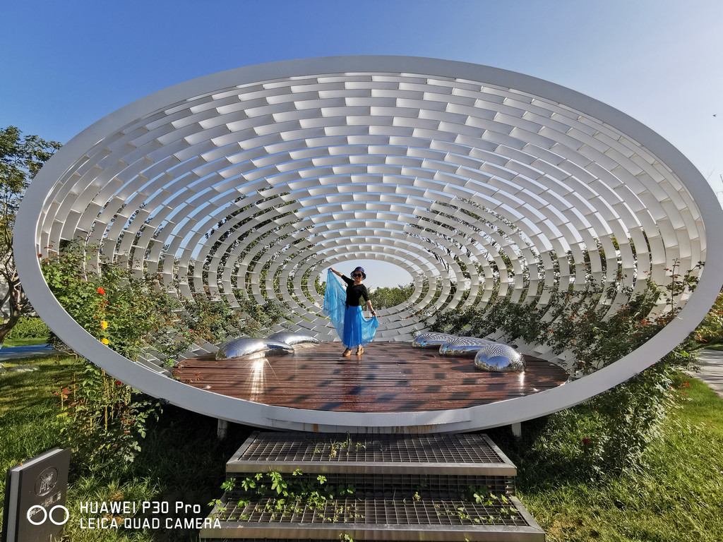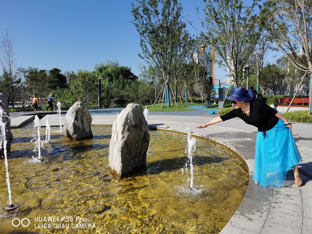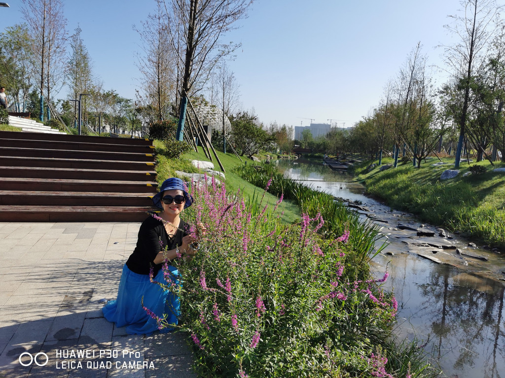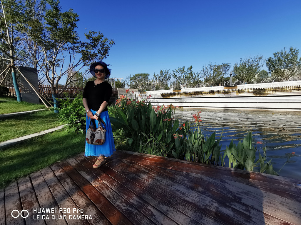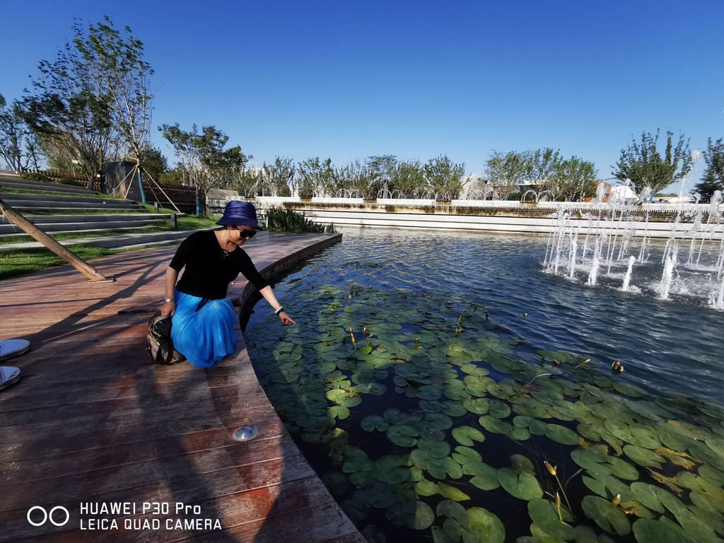 一路来到公园,这里还有一些区域没有开园,游人不多夏意渐浓。通过多种技术途径打造的“生态绿肺”,碧廊、步道、广场、景观桥、喷泉、休闲亭、雕塑造型等,构建成绿色健康的生活社区滨水休闲带。满园芬芳与水清树绿相得益彰,漫步园区,花繁绿浓、天蓝水清。200余种植物,配有科普牌,让大家在观光的同时学习到一些园林知识。沿着水岸小路、彩色步道缓步漫行,一路谈笑、一路赏景、拍照,呼吸着清新的空气,感受着故乡皇城大地巨变带来的快乐。在此切身体验着“水边漫步,踏花而行”的美好意境。