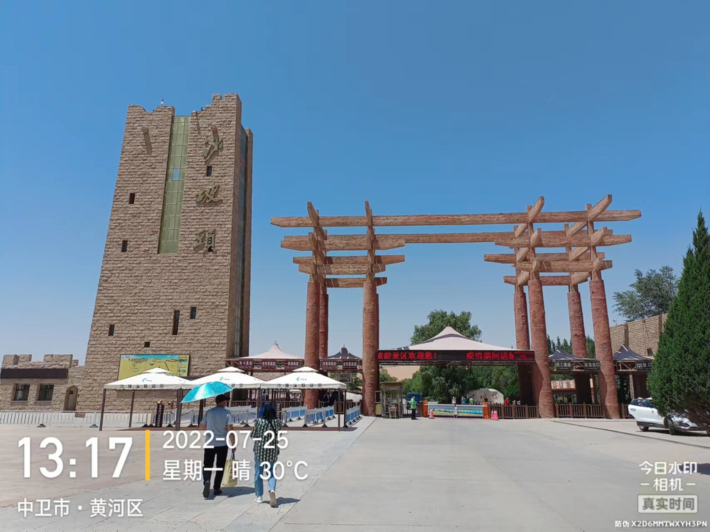 第2天,7月25日,7:30吃过早餐,直奔中卫市沙坡头,大约3个多小时,宁夏镇罗南收费站出,穿过中卫市,往西方向行驶10几公里,沿路路牌带“沙”的景区很多,要仔细辨认,景区很大,有滑沙、坐羊皮筏漂流、空中滑索、沙漠项目、玻璃桥等游玩项目,门票80元只是进门的票,其余皆为套票,价格不一,要另外购买,我选择最为经典的滑沙、玻璃桥观景项目,大约需要一个半小时。离开景区,因提前未预定酒店,进入中卫市行驶时,选择了道路旁边规模较大的水岸云天观景酒店,488元,方便,房间大,但是新装修酒店,有味道,卫生条件不错,不知啥原因房间竟然发现了蟑螂。