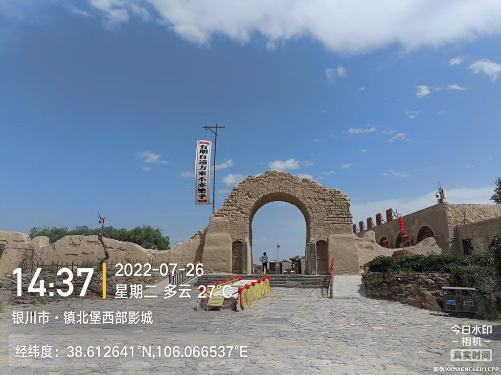 参观完西夏王陵,百度地图显示镇北堡影视城距离此地十几公里,国内很有名气的影视拍摄基地,《红高粱》、《牧马人》等很多获奖电影在此拍摄,也是本人比较崇拜的作家张贤亮打造的影视王国,张贤亮在南梁农场劳动的时候发现“镇北堡”像他自己一样,连续劳改20年,知心不改,具有一种衰而不败的雄浑气势和发自黄土地深处的顽强生命力。80年代,他平反后,第一次将镇北堡写进了他的小说《绿化树》,在书中称"镇南堡"。立即决定前往,行驶20分钟,到了停车场,没有想到人多、车多,停满了车场。门票80元,门前的对联很有意思“旅游长见识、行走即读书”,整个影视城分为清城、明城及旧银川街景三大块,历时3个多小时。