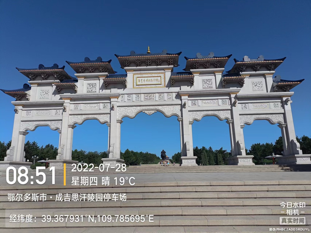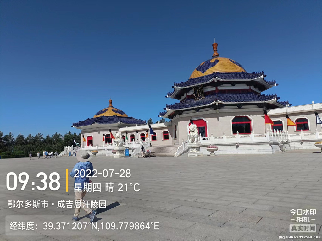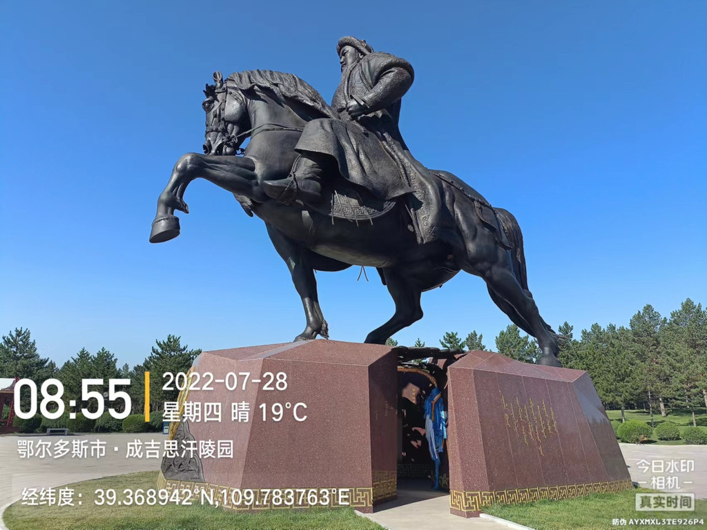 第5天,7月28日,早餐在楼下吃了包子、油条和稀饭后退房,景区8点半开门,人不多,门票170元,打折90元,景区不大,陈列的藏品精致,气势宏伟,展示了一代天骄成吉思汗统一中原的辉煌一生,有导游讲解会好一些,不到一个小时就看完了。