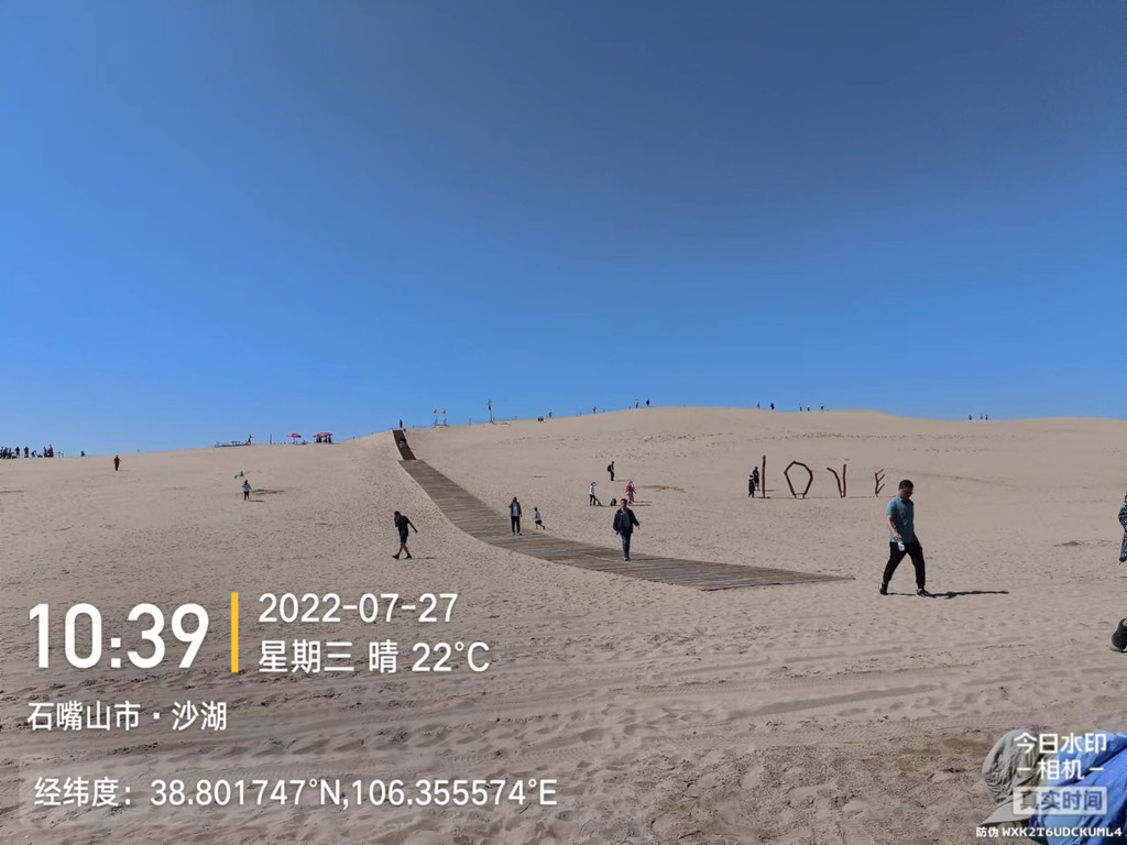第四天,7月27日,起床后收拾行李,两个人在楼下吃了兰州拉面,鸡蛋、包子后直奔沙湖景区,40分钟左右,到了沙湖景区停车场,去的早,车不多,但门口查的严,核查两码、48小时核算证明,门票挺贵,110元,疫情打折,但需买套票乘船前往沙丘区。有骑骆驼、滑沙、沙漠跑车、乘坐快艇等游玩项目,11点多,光脚踩在沙子上很烫,中午就不能光脚了,游玩大约2个多小时,