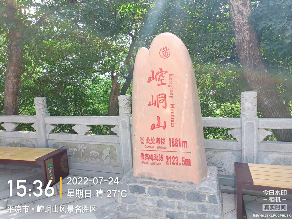 第一天,7月24日,吃过早饭8:00出发,经六村堡立交进入福银高速、永咸高速、凤永高速后经青兰高速,中途选择泾川、永寿服务区短暂休息,从陕西咸阳长武县出省界到平凉西收费站出口下高速,通行费202.64元,左转不远就到了崆峒山东门售票处,票价110元,受疫情影响打折55元,步行道登山,台阶较陡,崆峒山道教第一山,儒、佛、道三教合一聚在此山,海拔2120米左右。费力气,历经3个多小时,登顶休息,坐摆渡车(每人32元)十几分钟下山到了东门停车场,开车30分钟进入市区入住携程网站预订的维也纳酒店,干净卫生,双早餐,停车方便,位于市中心,周边有大型世纪商业广场,柳湖公园。