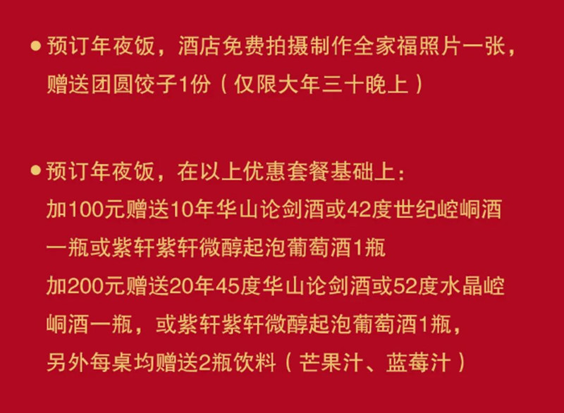 一桌好“年味”,喜乐福美满。优秀的厨师团队,精选丰富新鲜食材,匠心呈现多款浓情团圆年夜饭。广成将美好的新年祝福蕴藏在一道道美味佳肴中,将“年味”带回家。