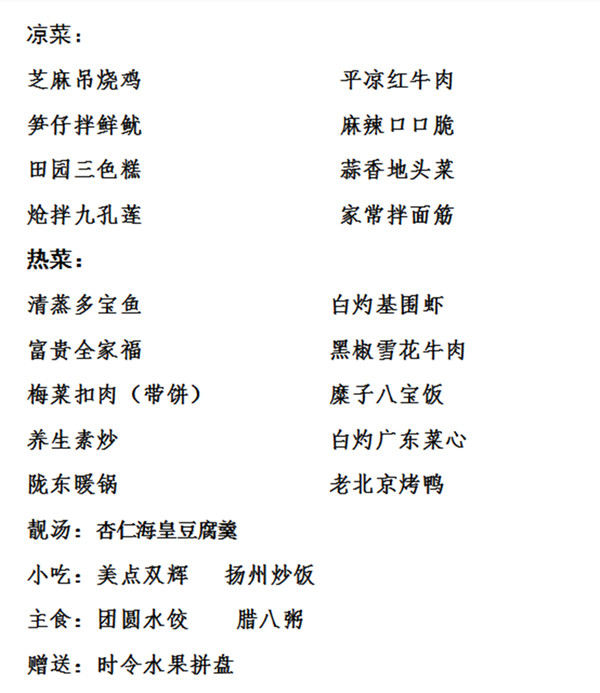 来看看今晚的菜单,煎炸蒸煮、清淡浓烈、海鲜烤鸭、荤素搭配,丰富多样。