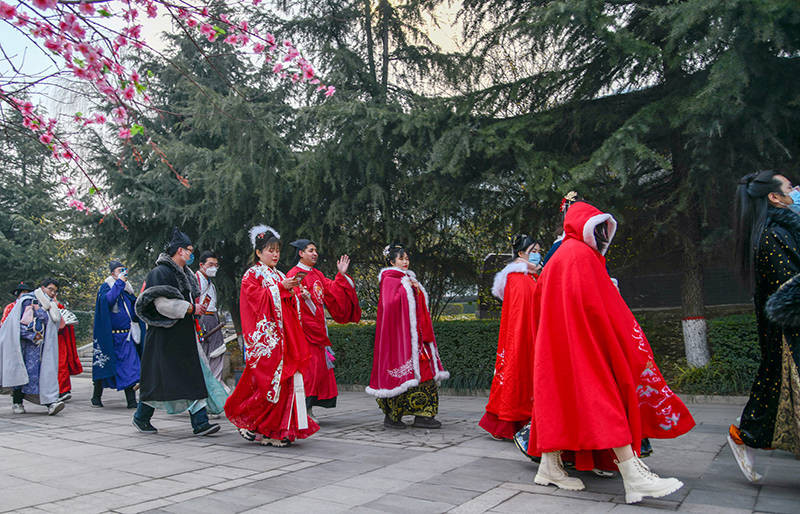 一走进汉城湖,传统年味儿扑面而来。不少汉服爱好者穿着古装游园、表演、留影……精彩不断。