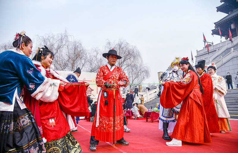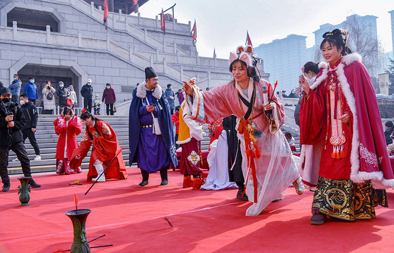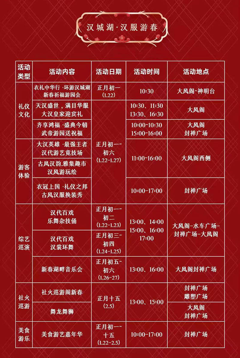 2023年春节,汉城湖新春活动汉风年味十足,迎宾礼、杂技快闪、汉风游玩绘、祈福游园……等“汉礼”系列活动系,对汉代礼仪进行的生动再现。