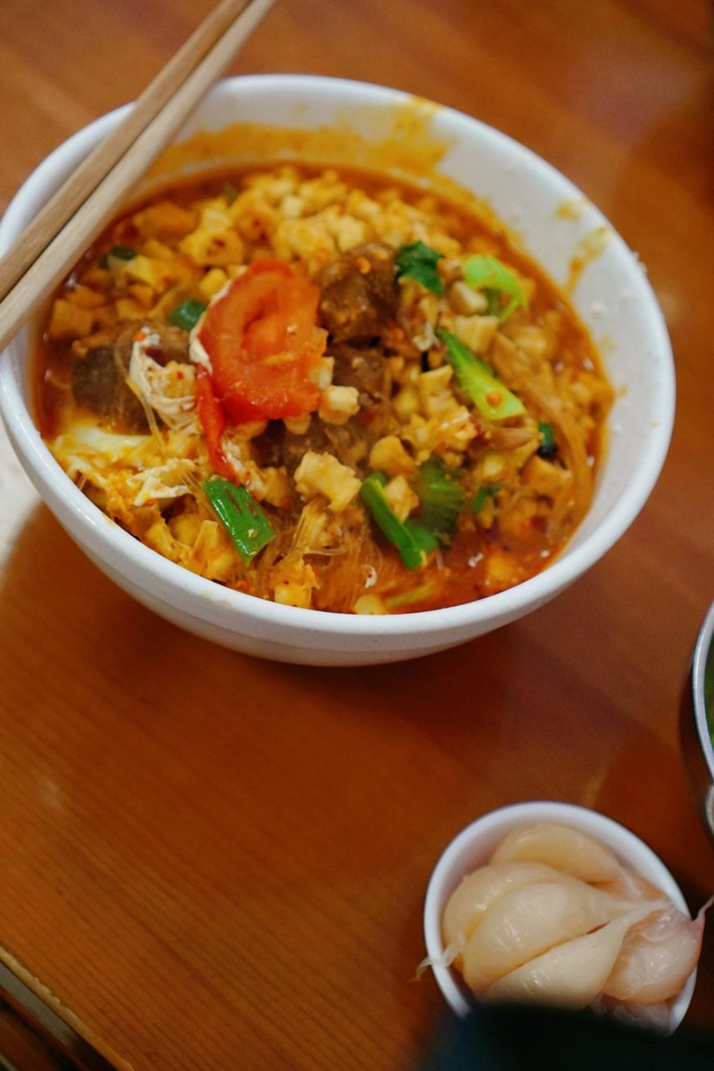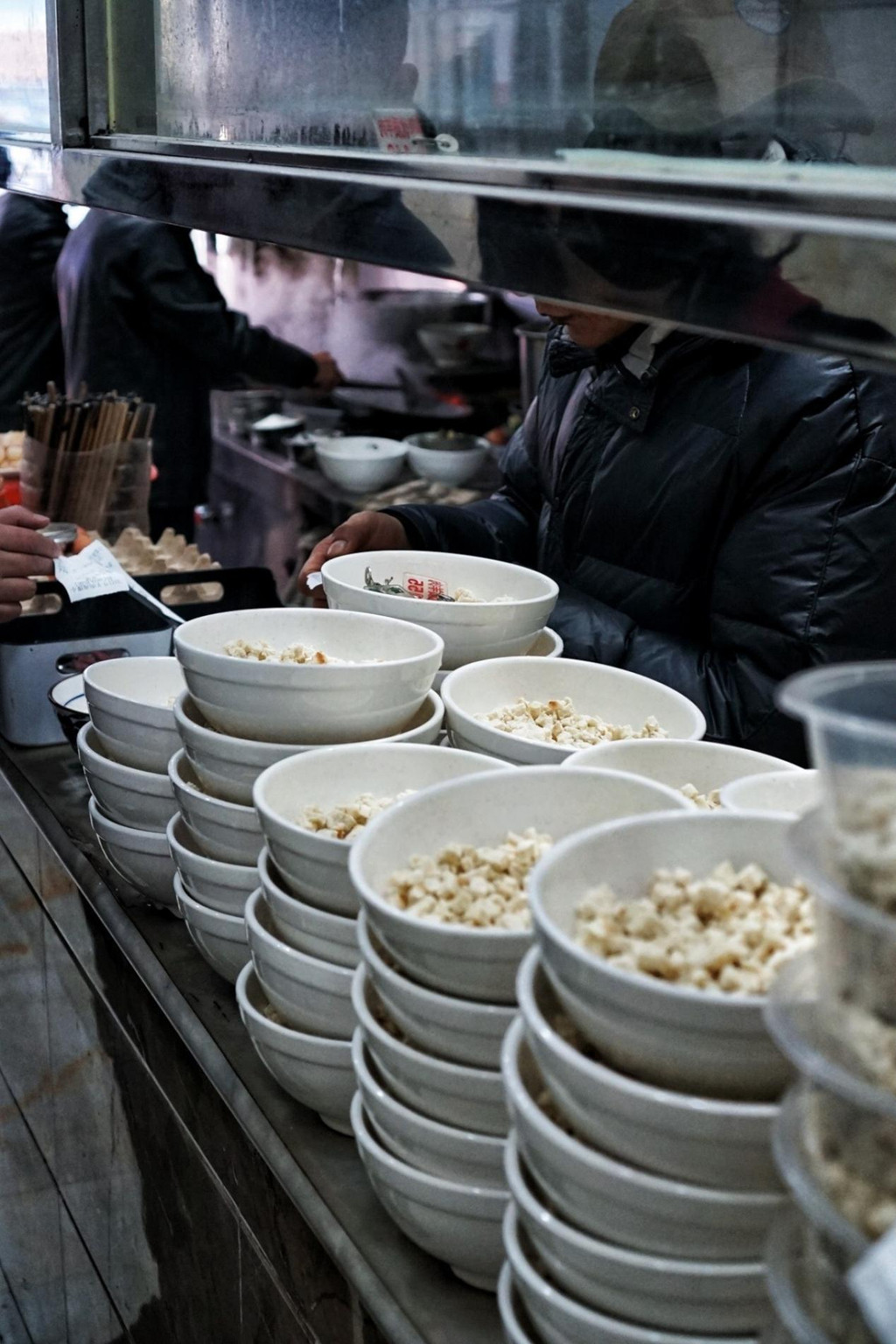 之后我们找了一家店里面吃了羊肉泡馍。其实在西安有很多泡沫店。有的是羊肉泡馍,有的是牛肉泡馍。我们找的这家店也不是某评榜上最有名的店铺,但是,这家店的泡馍却真的很好吃。