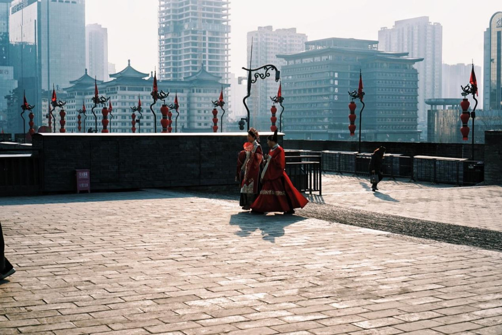 终于来打卡了西安古城墙。这可是非常有标志性的一面墙啊。我们依然选择了去古城墙上看一看。毕竟,从城墙上看到的视角,和在城墙下的视角完全不一样。