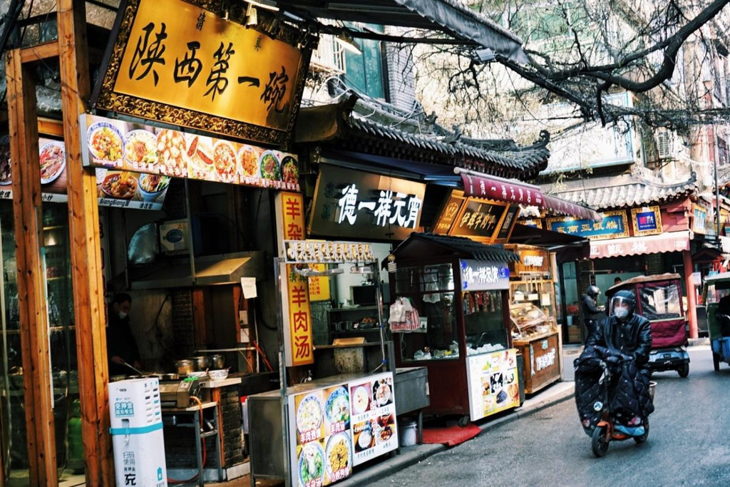 到了西安,我们取车之后直接开车去了洒金桥。这一路上看到的西安和我想象中并不太一样。直到到了洒金桥之后才觉得,这里果然是一座古城啊。街道并不宽阔。沿街基本上都是三层小楼。但是,这里的树木,阳光照射下来的光影,以及到处可见的美食店,都让这里充满了人气。