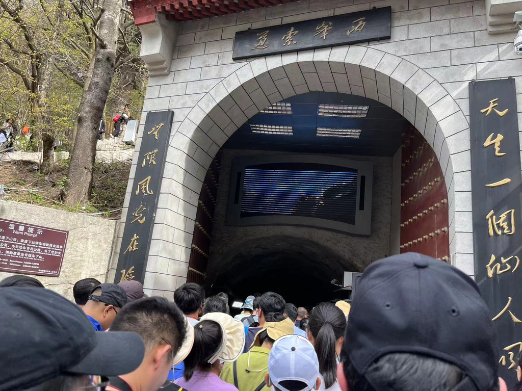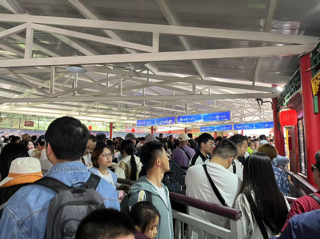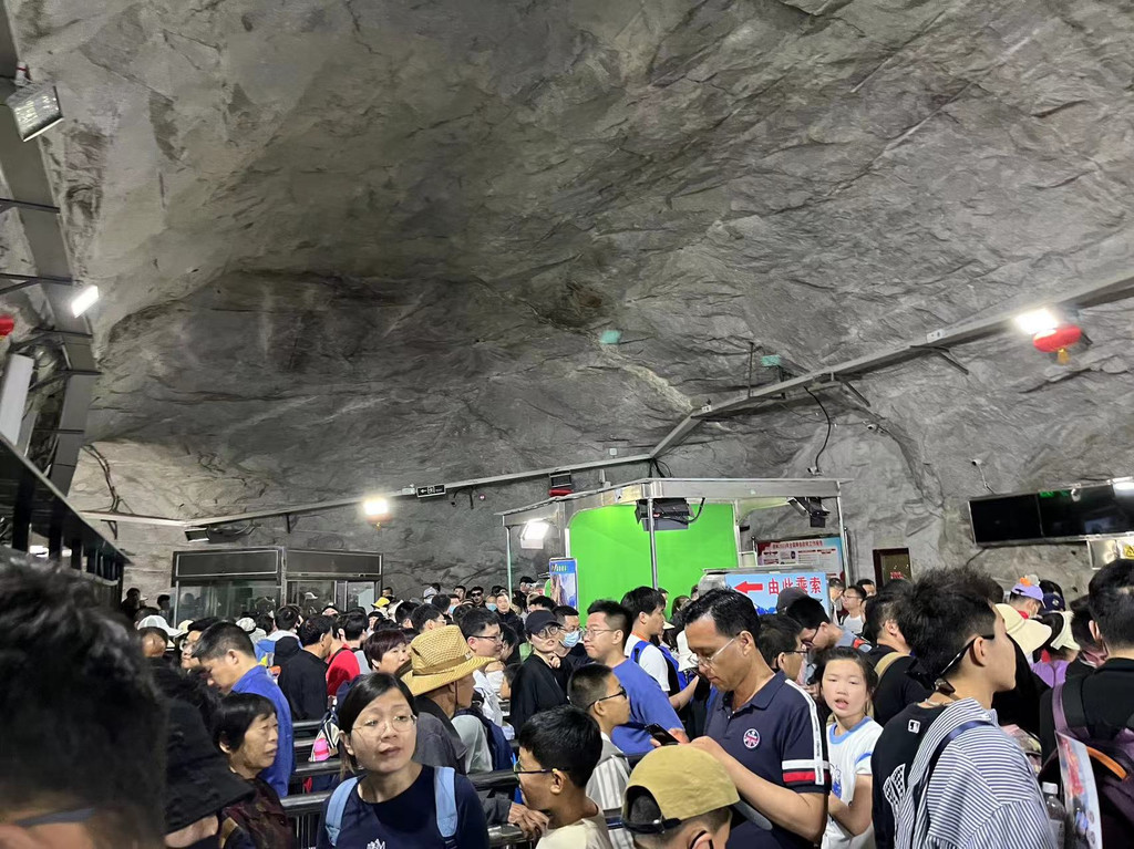 北上索道的排队处,我们排了大约40分钟,据说西上那边排了一个半小时