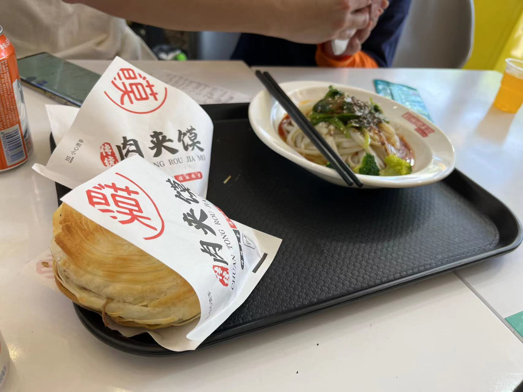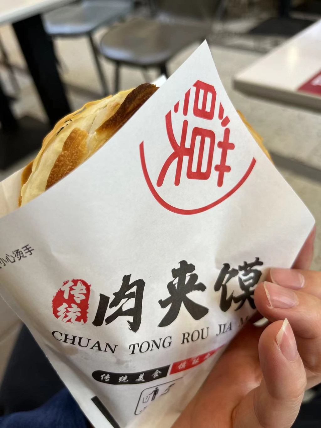 肉夹馍不吃猪皮的话建议点纯瘦肉夹馍,当然香度差一点,有肥肉咬得香