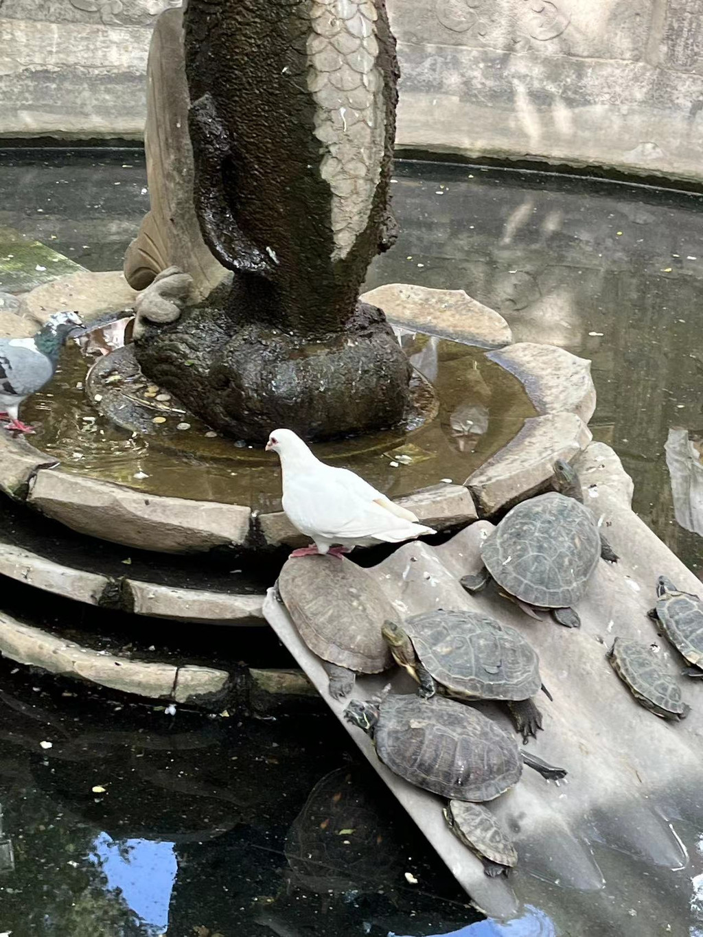 这里很幽静,人不多,乌龟也睡得七仰八叉