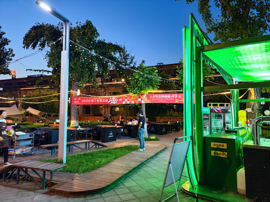 阿纳加艺术礼堂周边,老钢厂的泛黄红砖墙和简洁钢铁楼梯,以及水景改造的酸洗池和屋顶的轨道改造,都记录着时代和记忆的印记,充满魅力。这里不仅富有创新意识,还有数不清的闪光点,像美食、美景、潮流和文艺等等,深深吸引着新潮一族的西安人。