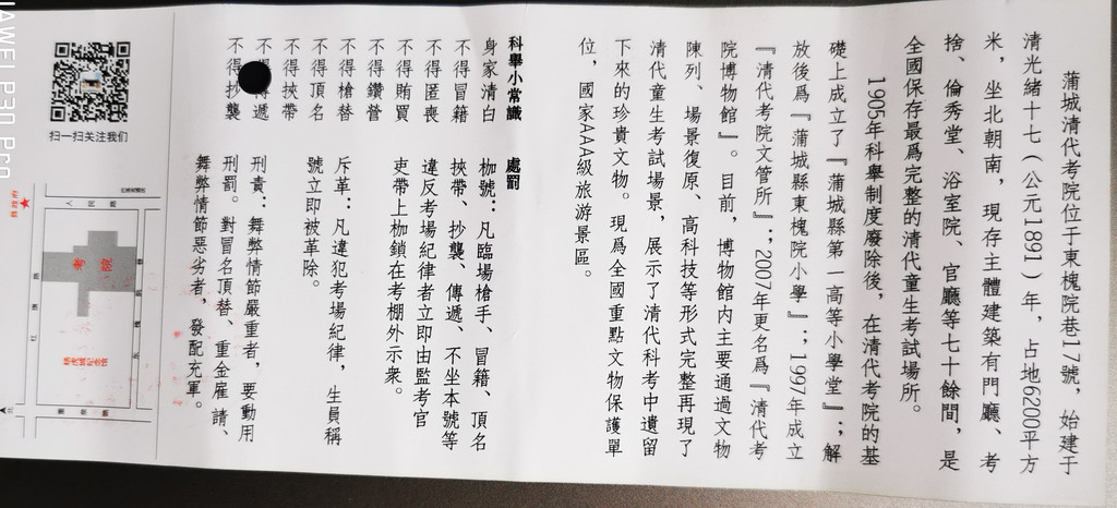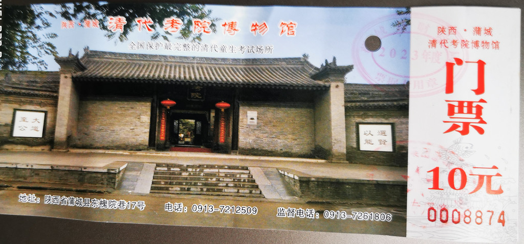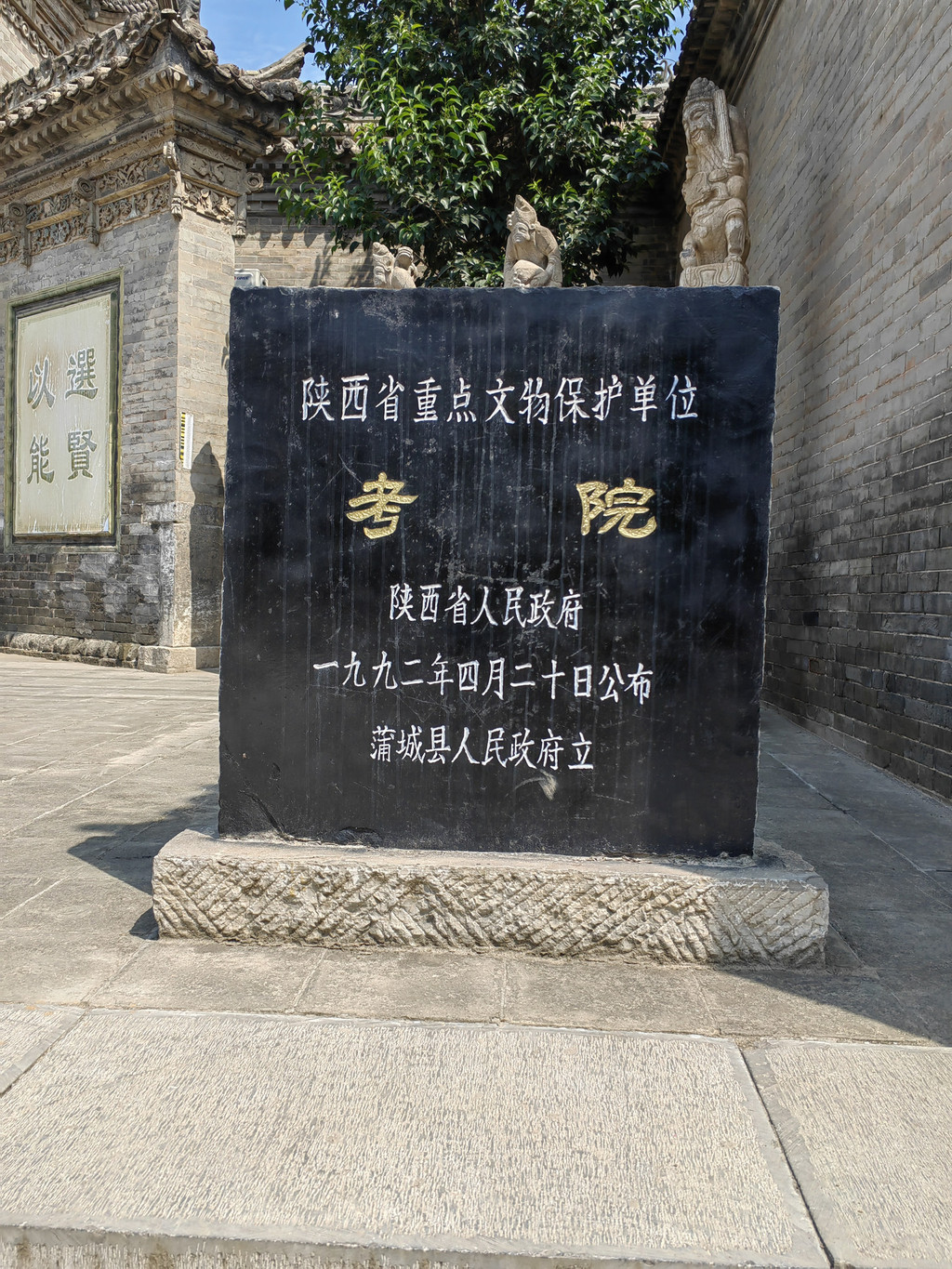 出门斜对面走近古考院,犹如再进考场。美女老友替我们买了门票,也是作为纪念。蒲城考院始建于明代,占地面积6200平方米,是中国国内保存较完整的清代考院建筑群。曾经还是“蒲城县东槐院小学”,这里也是我们的美女老友的母校,所以她的导游更加具体真实的展示着考院的古往今来。
