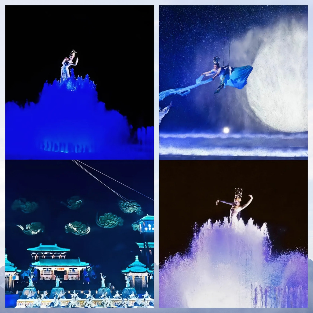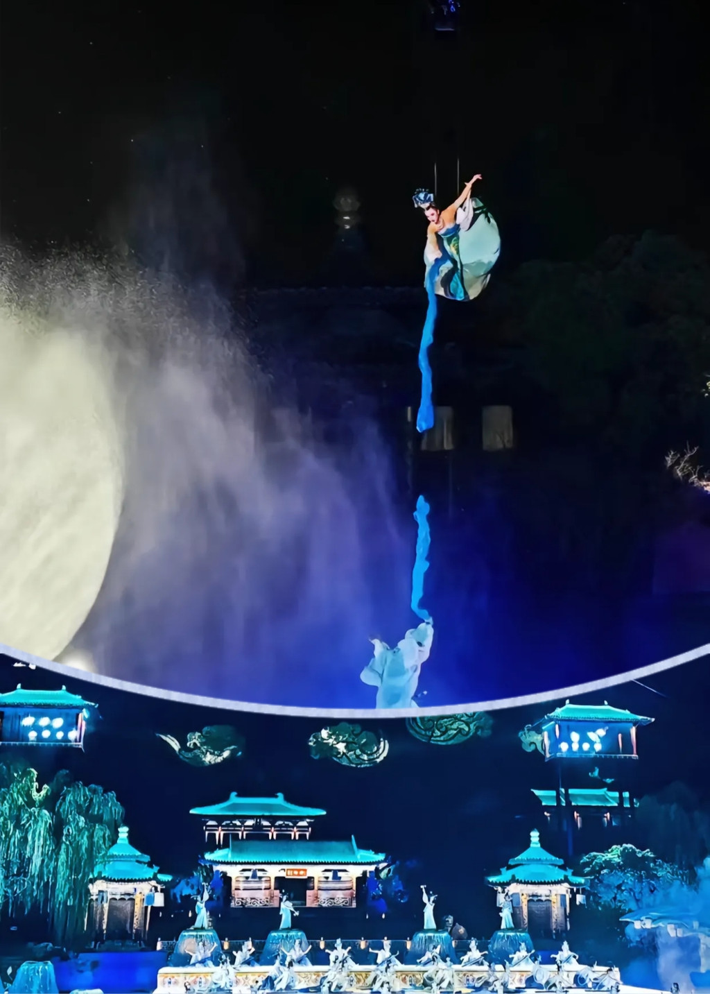 长恨歌演出是露天场景,记得做好保暖出门时候带一件外套,晚上天气冷,不过要是没有自带衣物,场馆外面有租衣服和毛毯的。场次选择中尽量选择后两场,第一场天还没完全黑,会影响观看的效果。