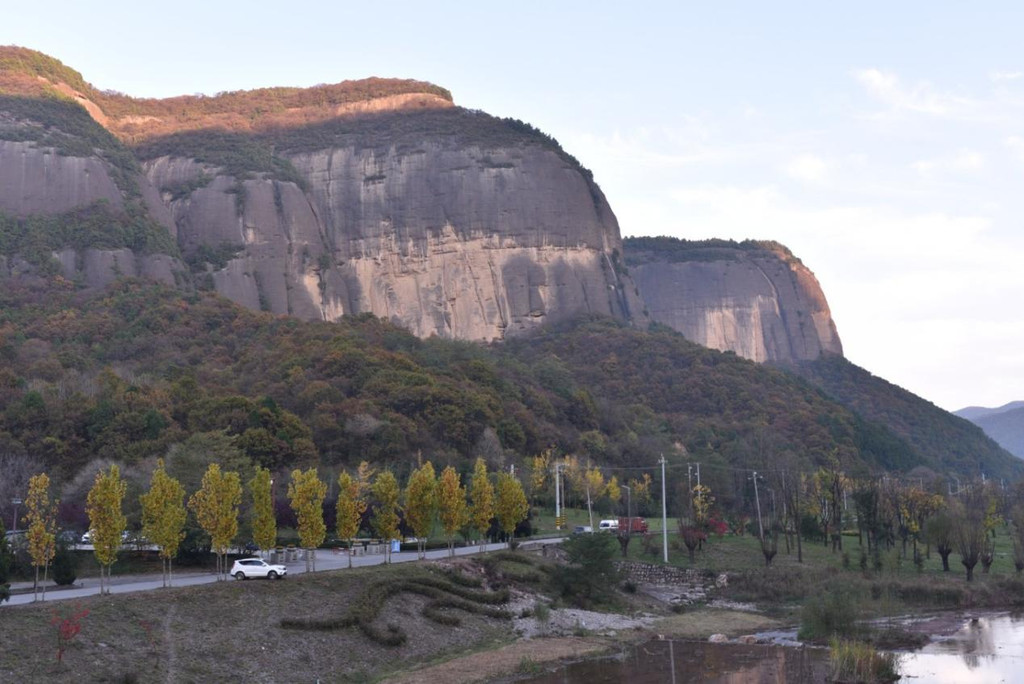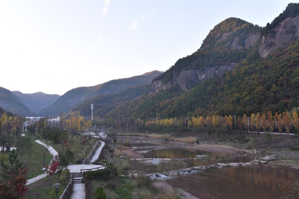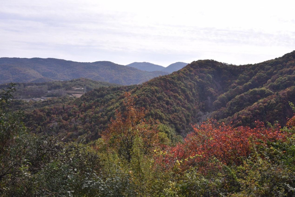 其实沿着另一条路走下去也行,正好就能绕行一圈。下午5点10分开车离开香山寺,准备到薛家寨看一下。我们来的时间还是稍微早了点,红叶还不是特别红。下午5点40分到了薛家寨,不出所料地已经关门了。只好在外面看看。