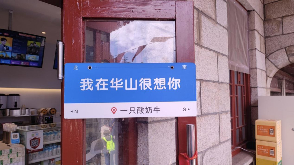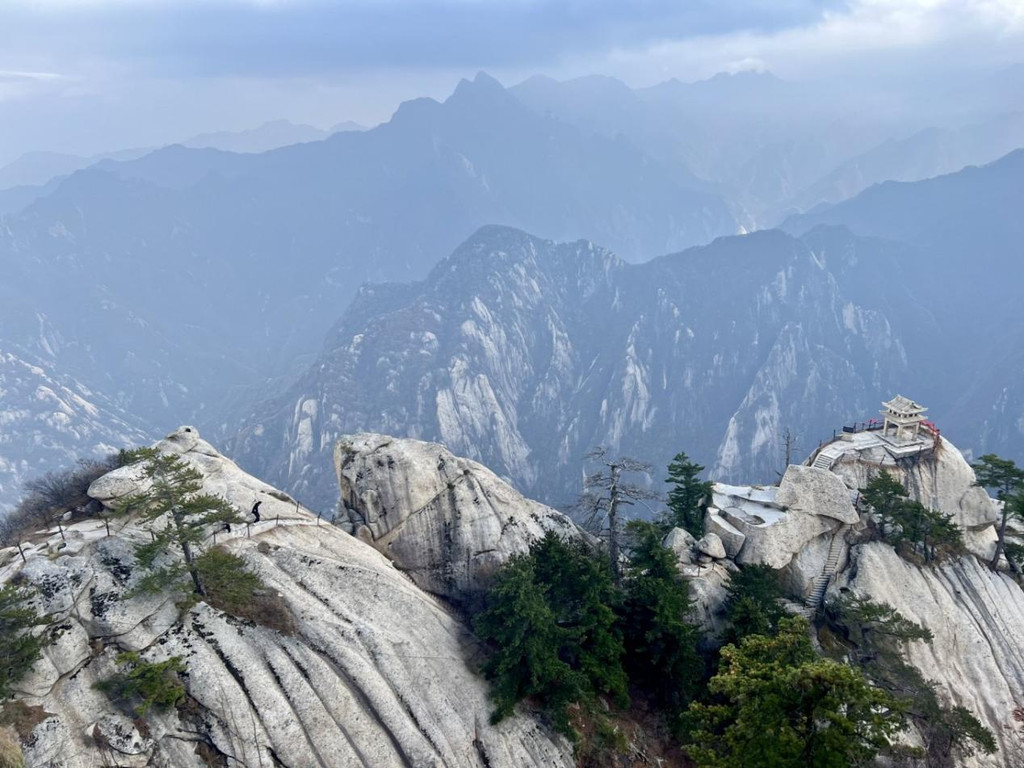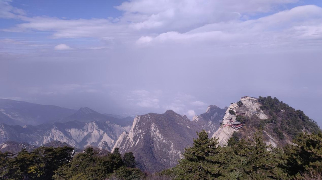 接下来,准备从南峰顶向东峰方向前进。本来想去体验下华山第一险,长空栈道。结果被告知,今天检修,停运。即遗憾又庆幸。遗憾的是没能打卡“思过崖”,庆幸的是挽回了尊严,毕竟光是看着远处维护设备的工人,我的脚都在发抖。