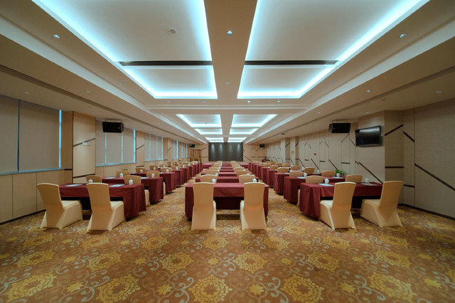 如果需要举办商务宴请或婚宴,酒店现有六个不同规模的会议室可供选择。会议室配大型LED显示屏、光纤无线上网和音等先进设备,确保活动顺利进行。
