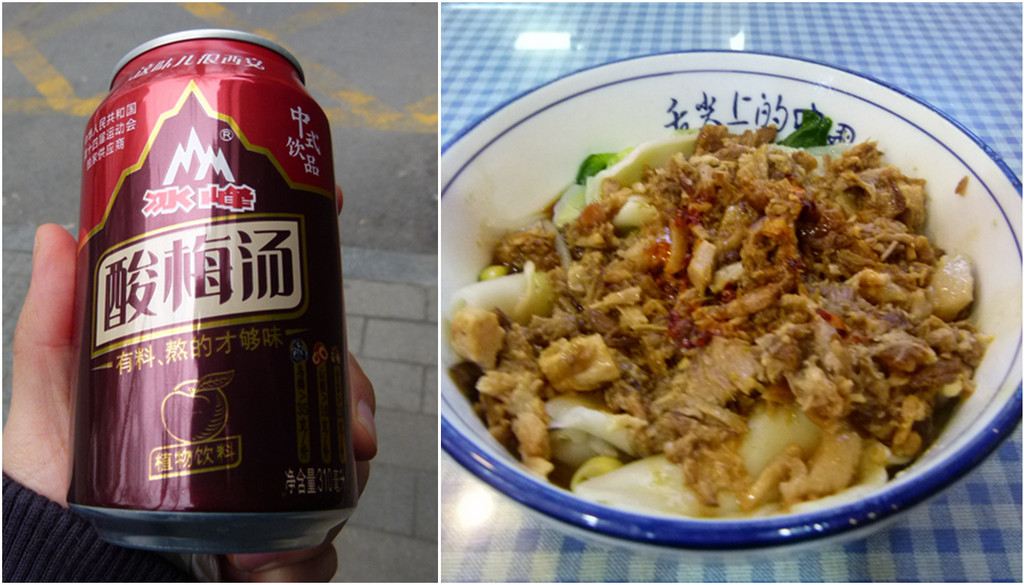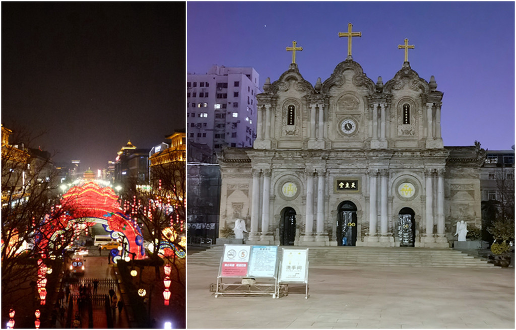 从小雁塔北门出来原计划骑车到钟楼拍夜景,没想到骑到南门就因为雨越下越大不得不停下来,找了家biangbiang面馆边吃边等雨停。因为有名的那几家过年不开业,找的是一家连锁的,团购的套餐外还要了个凉菜,可惜味道一般,面也不够筋道。