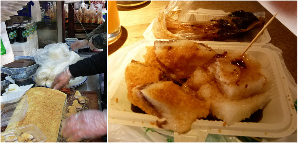 出高家大院顺手捎了一盒“佳宝甜食”的凉糕双拼,下午品尝时发现糕本身没啥甜味,一个像白粽子,一个略带松花香,一定得淋上给的玫瑰花酱才好吃。