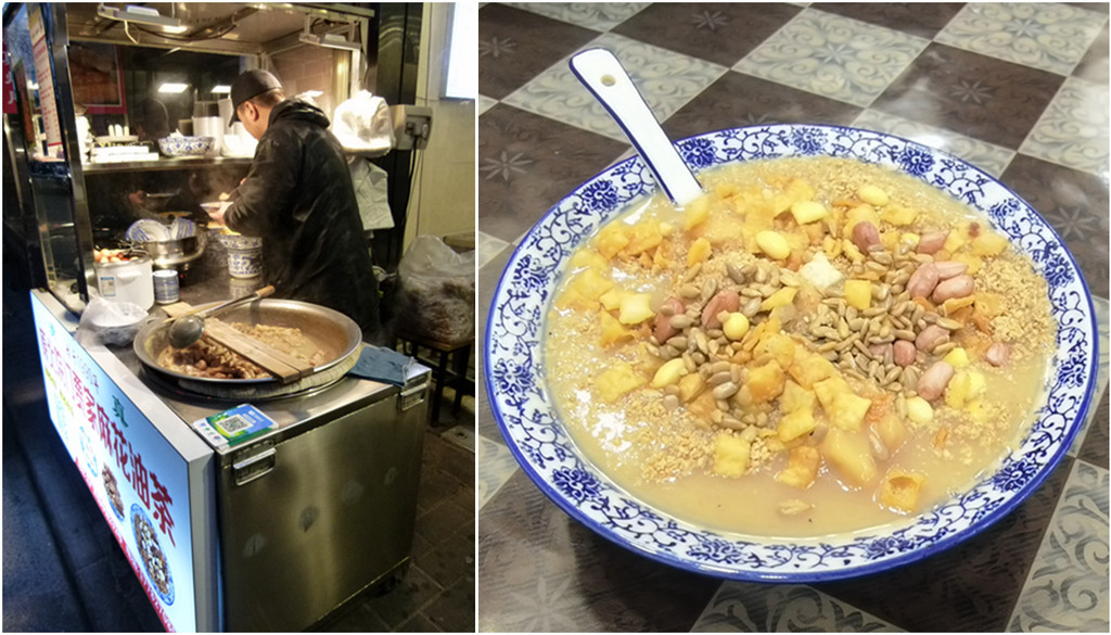 睡到差不多自然醒,出门先喝碗油茶麻花,椒盐味的小料铺得满满当当,麻花是软糯口感的。