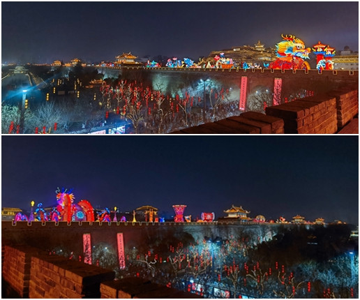 可能我上城墙时间比较早,人比我想象中要少,走着走着看花灯随着日落逐渐亮起,人也越来越多,上厕所一次排队20分钟,要想在城墙拍个单人照有点难度。