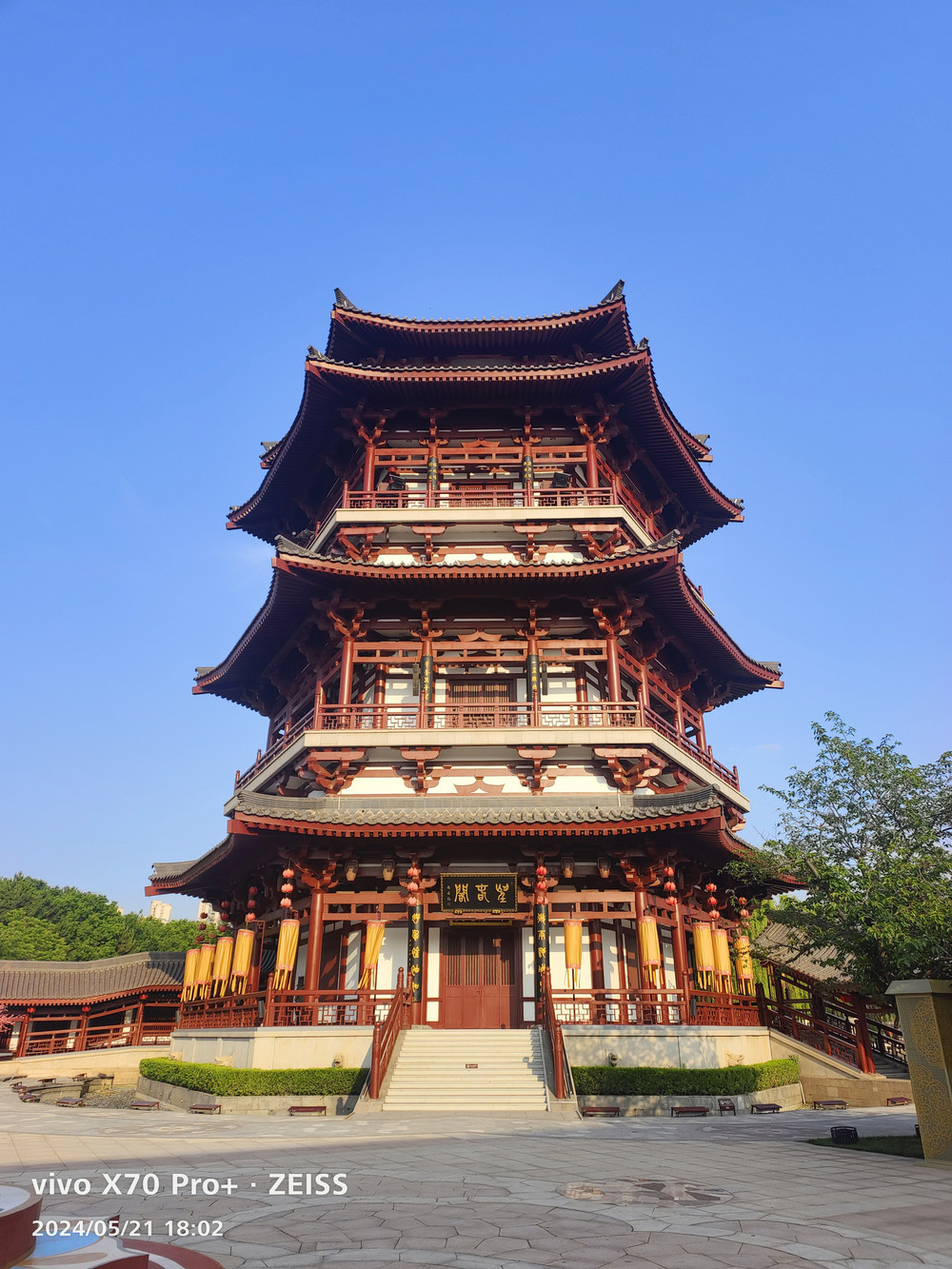 2024年5月21日下午5点左右,我们已经在酒店休息一段时间,太阳西斜,阳光不那么强烈,出门乘21路公交前往大唐芙蓉园,在景区北门下车。大唐芙蓉园我们之前也来过,不过步履匆匆,未有尽兴,此次再游,妻子感觉犹如初游,兴味仍然不减。