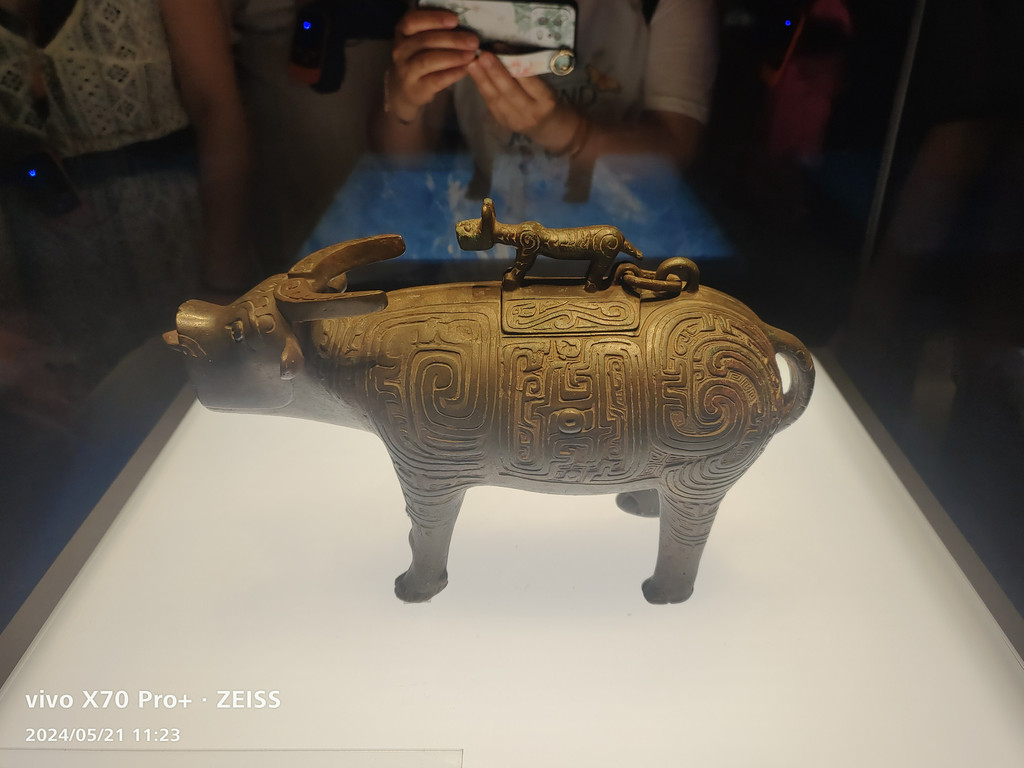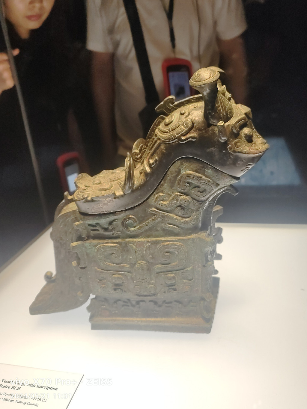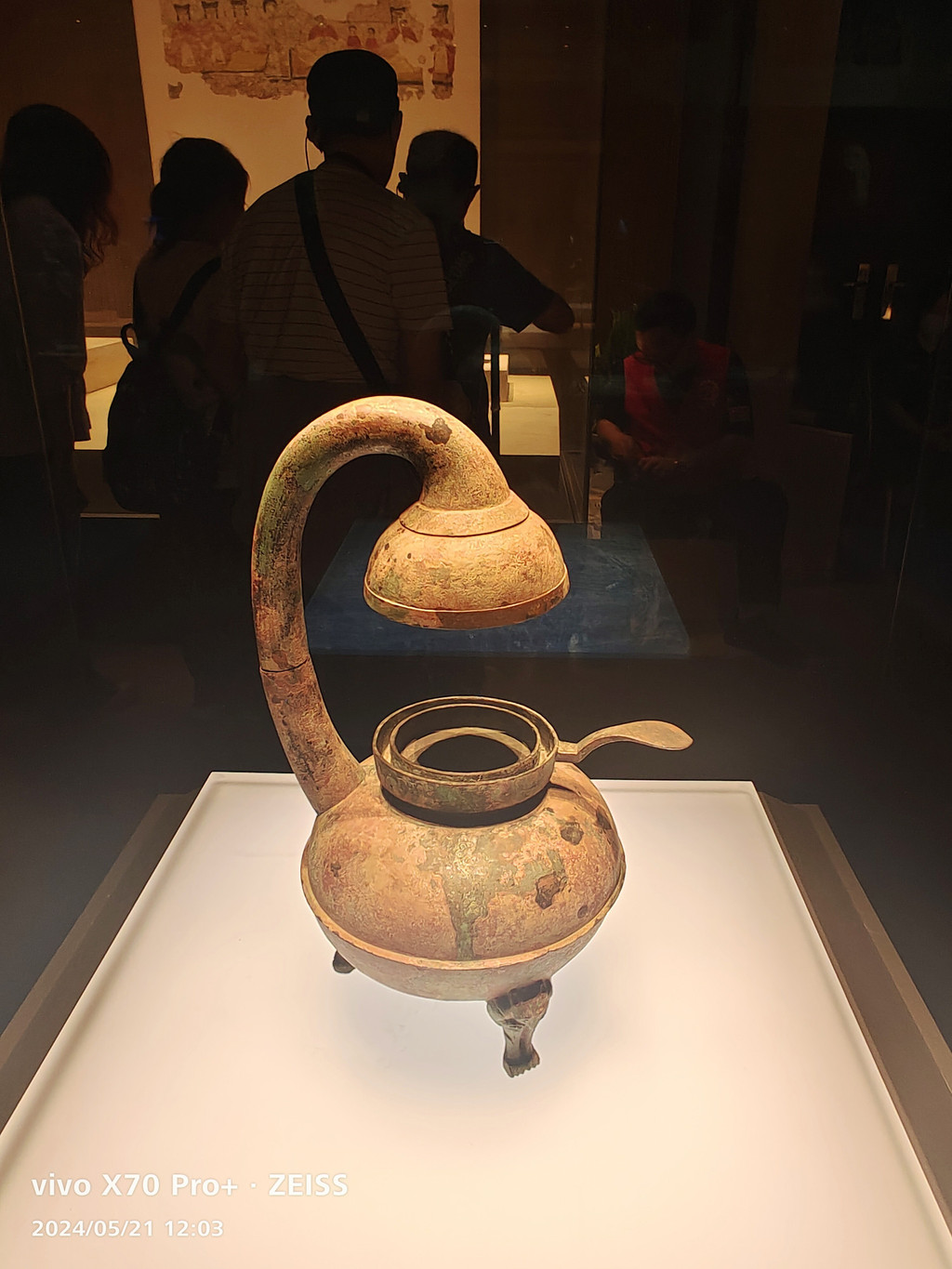 2024年5月21日早晨在酒店吃过早餐,8点半乘26路公交前往陕西历史博物馆,8点55分到达,我们已经提前预约了当天9点入馆门票,所以9点即可刷身份证进入博物馆。现在陕西历史博物馆必须提前预约参观,老年人也一样。可以提前3天预约,网上预约窗口每天三个预约时间,预约时间一到,会显示预约日期和每天的时间段,一定要赶快点击填写预约内容,否则,可能马上显示约满。我们是约了几次才约上。其实博物馆我们之前已经看过,不过妻子对此已无印象,要求再次参观,反正是免费,不妨多看一次,就陕西历史博物馆的名气而言也是值得,谁知道当天周二,慕名前来的游客空前之多,馆内几乎无立足之地,观看效果和满意度大打折扣。每个热门展厅和展柜前都是人满为患,人头攒动,根本挤不到跟前。为什么会这样,就全国博物馆而言,陕西历史博物馆的排名,除了国家博物馆外,其不出前三,无论展品的质量和数量,以及重点文物都名列前茅,无出其右。