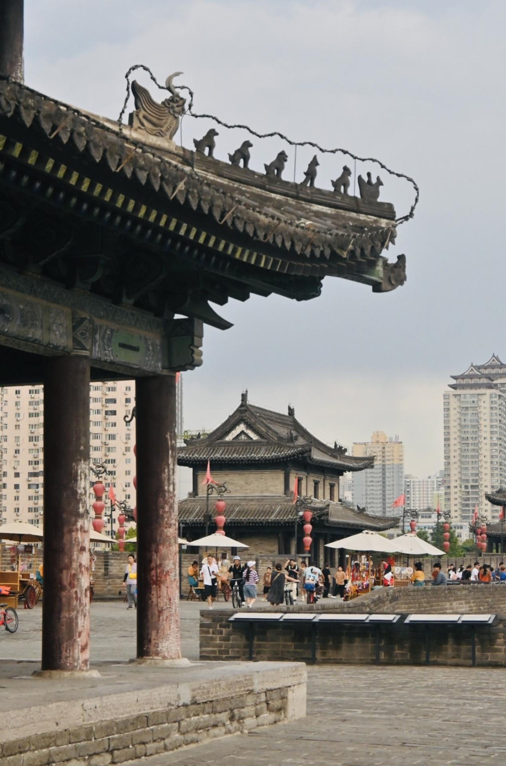 原本想着太累已经走不动(城墙全长:13.7公里),上去直接租自行车或者坐观光车,问了下,城墙上没有观光车,只有自行车,但是走了很久很久的路,才找到租车点,到的时候租车队伍排队太长,车已经没几辆了,而且还是座椅很高的山地车,最终放弃租车的想法,找最近的城墙出口下去得了。