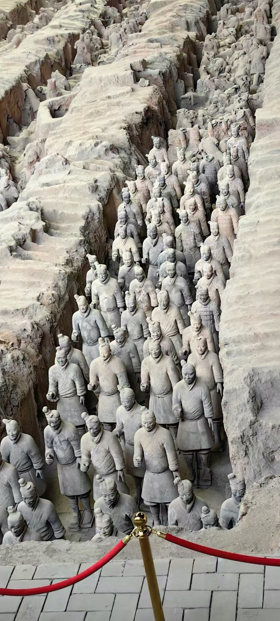 吃完又要开始排长队进场,大中午烈日当空,着实吃不消,只能坚持坚持再坚持,导游说这排队可比里面舒服,1号坑那是前后夹击,路不是靠走的,靠推挤来的。我们先看的1号坑,一开始先挤进门,进门后再挤到围栏前,等前排人看完后立马挤进去。