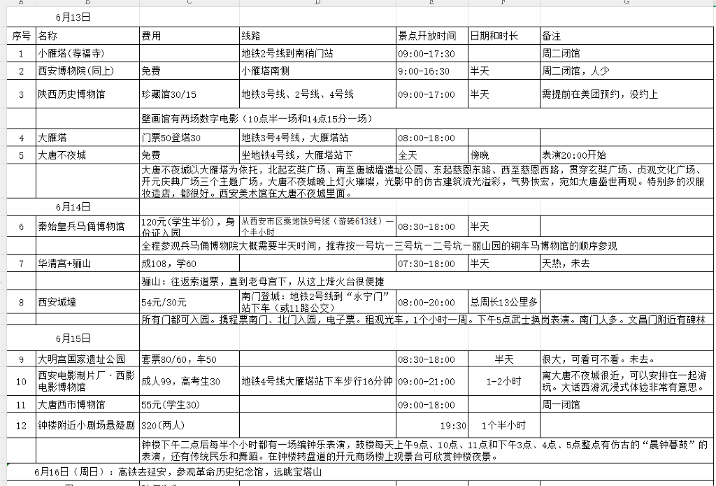 2024年6月,终于实现了延迟了4年的西安古都之行,向往已久的西安,原计划是在儿子初二的寒假去的,结果因为众所周知的原因被耽误了。后来儿子上高中学习较忙,直到今年高考结束了,才有时间有机会来这儿。而在这四年时间里,西安也已经由古都转型成了大家非常喜爱的网红城市。本次行程有惊喜也有遗憾,喜欢大唐不夜城的精美和繁华,但也感慨古都缺少了古色古香的韵味。