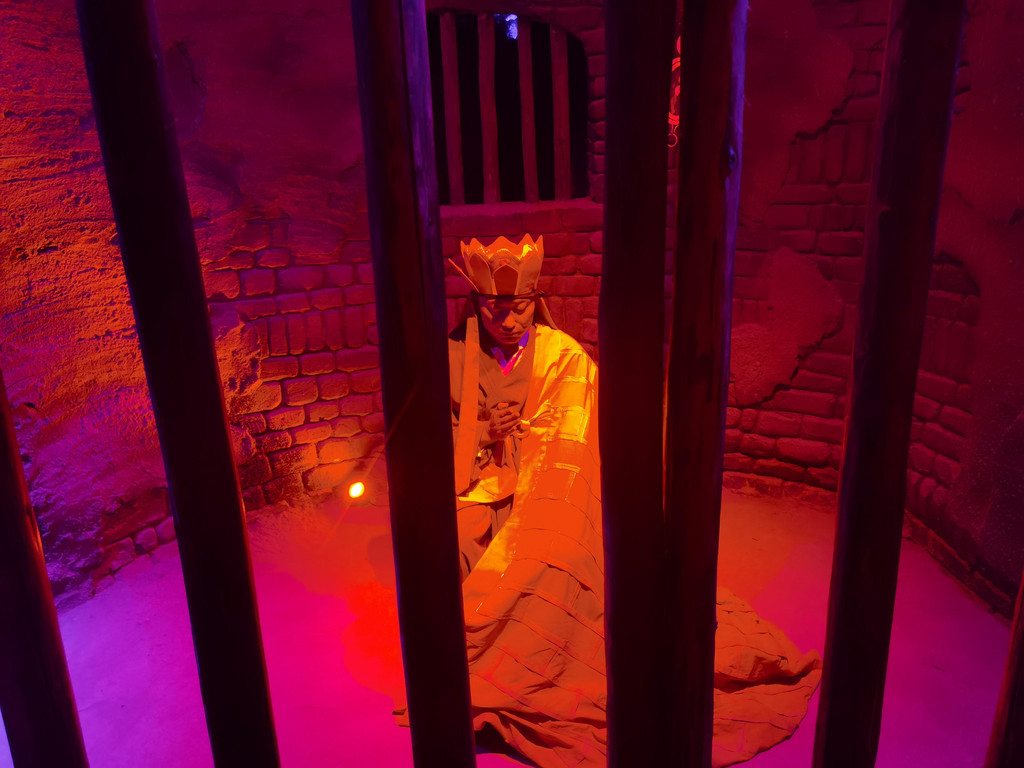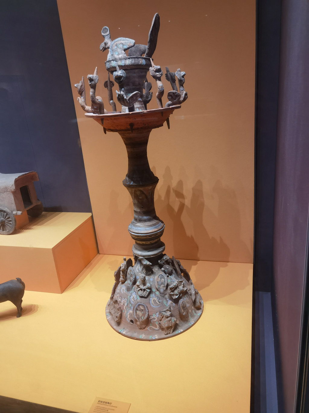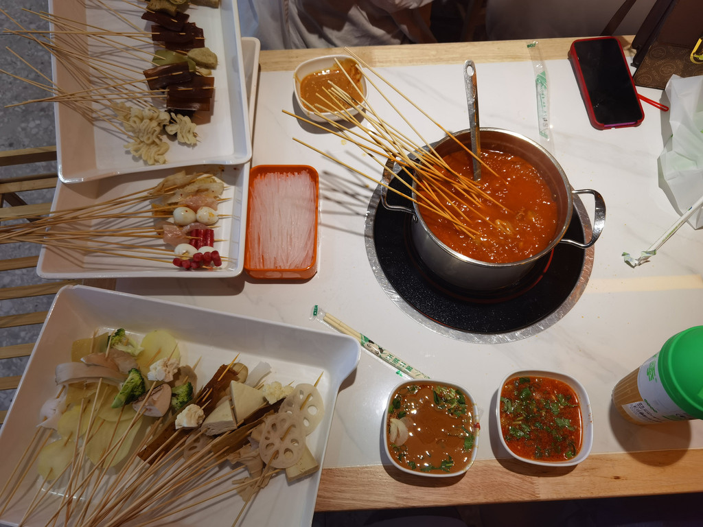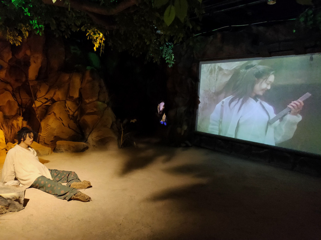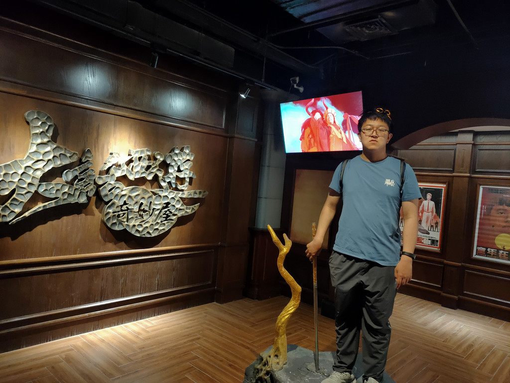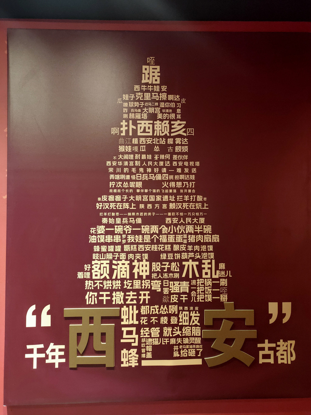 行程的第三天,在市内游玩。我和儿子早上去了洒金桥早市,吃了胡辣汤、麻花油炒面、胖子甑糕等等网红美食。上午去了大唐西市博物馆,博物馆里人非常少,内容反映的都是大唐时期通商的遗迹和文物,感觉还挺好的。中午团购了“三根电杆”的双人餐,整个餐馆的布置都是80年代的感觉,很复古,菜品也很好吃。的下午去了西安电影制片厂的电影博物馆,这是本次行程最大的惊喜,在西影博物馆里,有一个电影《大话西游》的沉浸式体验馆,里面都是电影《大话西游》的一比一复刻的场景,特别喜欢。傍晚在钟楼附近吃的烤肉,晚上在钟楼附近看了一场小剧场的表演。