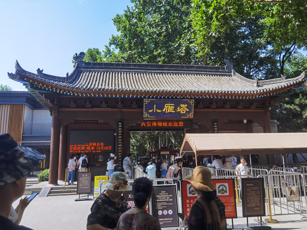 到达西安的游玩首日,游玩了小雁塔、西安博物院、大唐不夜城,远眺了大雁塔。陕西历史博物馆太火了,持续约了四天也没约上,所以就选择西安博物院进行平替。西安小雁塔位于荐福寺内,现在称为小雁塔或西安博物院。