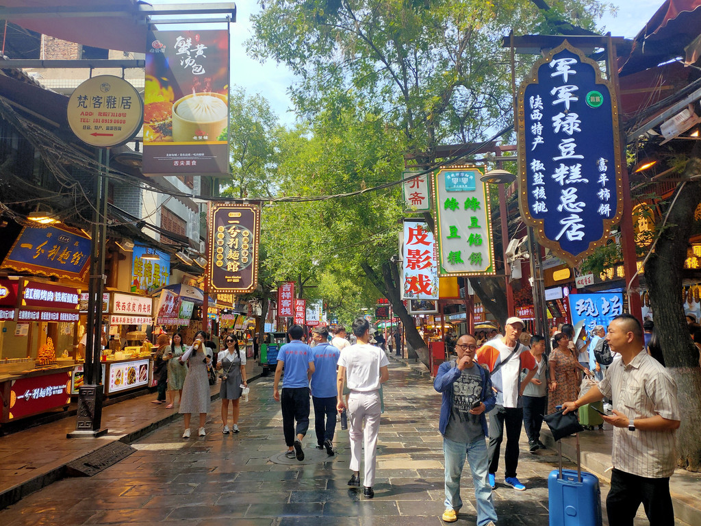 6月中旬的西安也非常热,我们选择的这几天刚好赶上升温,38度的高温,真的很热。逛完小雁塔,就坐地铁到了回民街,吃了很多西安特色美食,还看了场皮影戏。