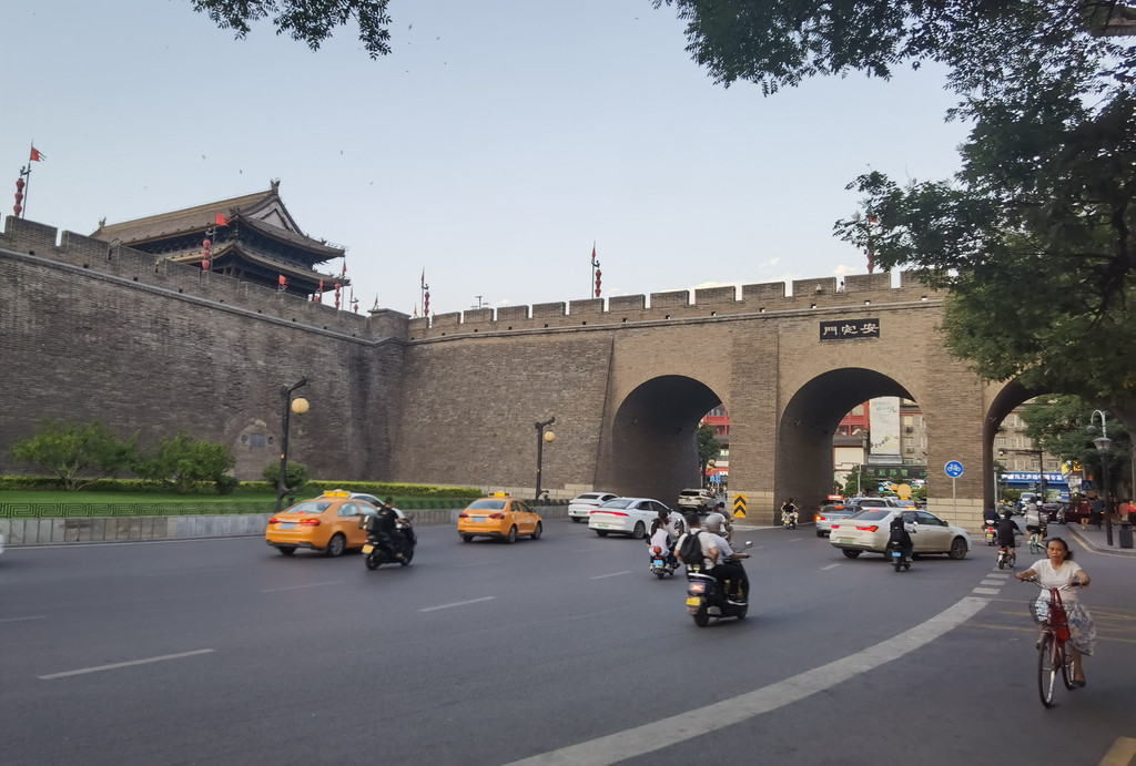 这就是本次西安之行的遗憾之二(之一是没约上陕历博的门票)——西安城墙没提前打听清楚,以为20点前能登城墙就可以从任意一个门下城墙,万万没想到,20点之后,只有正东正西正南正北四个城门可下,并且城墙上的观光车也已经下班了,而西安城墙非常长,从城门走到角楼再返回就花了两个小时,还不如当时登上城墙在附近转转就下来呢。