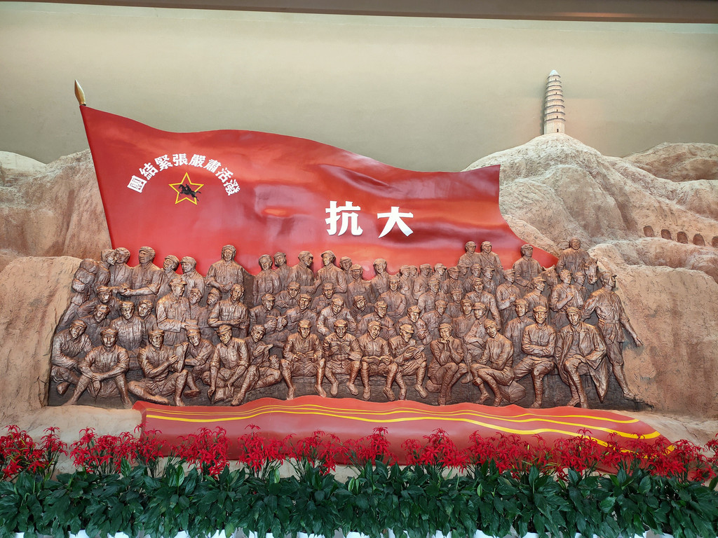 行程的倒数第二天,就没在西安玩,感觉好不容易来一趟陕西,想去延安看看,感受一下红色文化,西安到延安的高铁两个多小时,很方便(不过我们去的时候赶上了暴雨,所有车都晚点了,三个多小时才到达延安)。我们主要参观了抗联大学纪念馆,延安革命历史纪念馆,远眺了宝塔山。