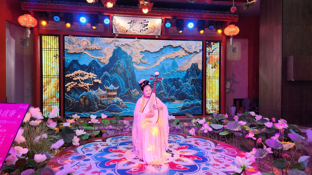 大慈恩寺旁边是大悦城,中午我们来到大悦城用餐,发现一个食客队伍最长的餐厅——长安大排档,等待时间大约半小时,生意红火。该餐厅以陕西美食为主,品种多样,服务形式灵活,还有节目表演吸引食客。老何点了一道名为“一口香”的菜品,名称诱人,能唤起人对美食的遐想,但端上来才发现是用小碗装的味道相同的臊子面,让人有上当的感觉,分六份吃起来还麻烦。肉夹馍很小,凉拌灰菜(秦岭野菜与杏仁)不错,枣泥汤精细味美,符合现代小食量人的需求。