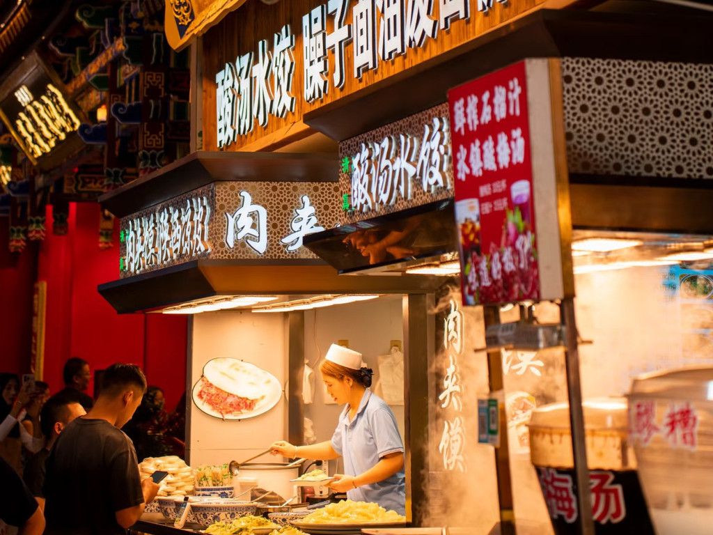 晚上转战回民街,但别只逛主街!拐进洒金桥才是吃货天堂:老马家肉夹馍、马二酸汤饺子、希木酸奶……胃容量警告!