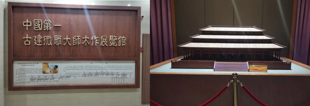 来到四楼咯,这是中国第一古建微雕大师木作展览馆。这里有令人惊叹的微雕艺术,每一件展品都精妙绝伦,凝聚着大师的智慧与心血,以细腻入微的雕刻技艺,将中国古建筑的神韵与魅力展现得淋漓尽致。