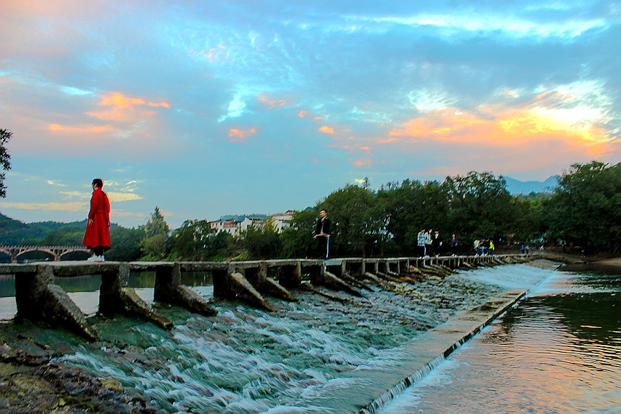 石梁桥是练溪两岸村民的交通桥梁,也是蓄水围堰的水利工程,上游之水从桥洞奔流而下形似瀑布,是游人与摄客必到之处。