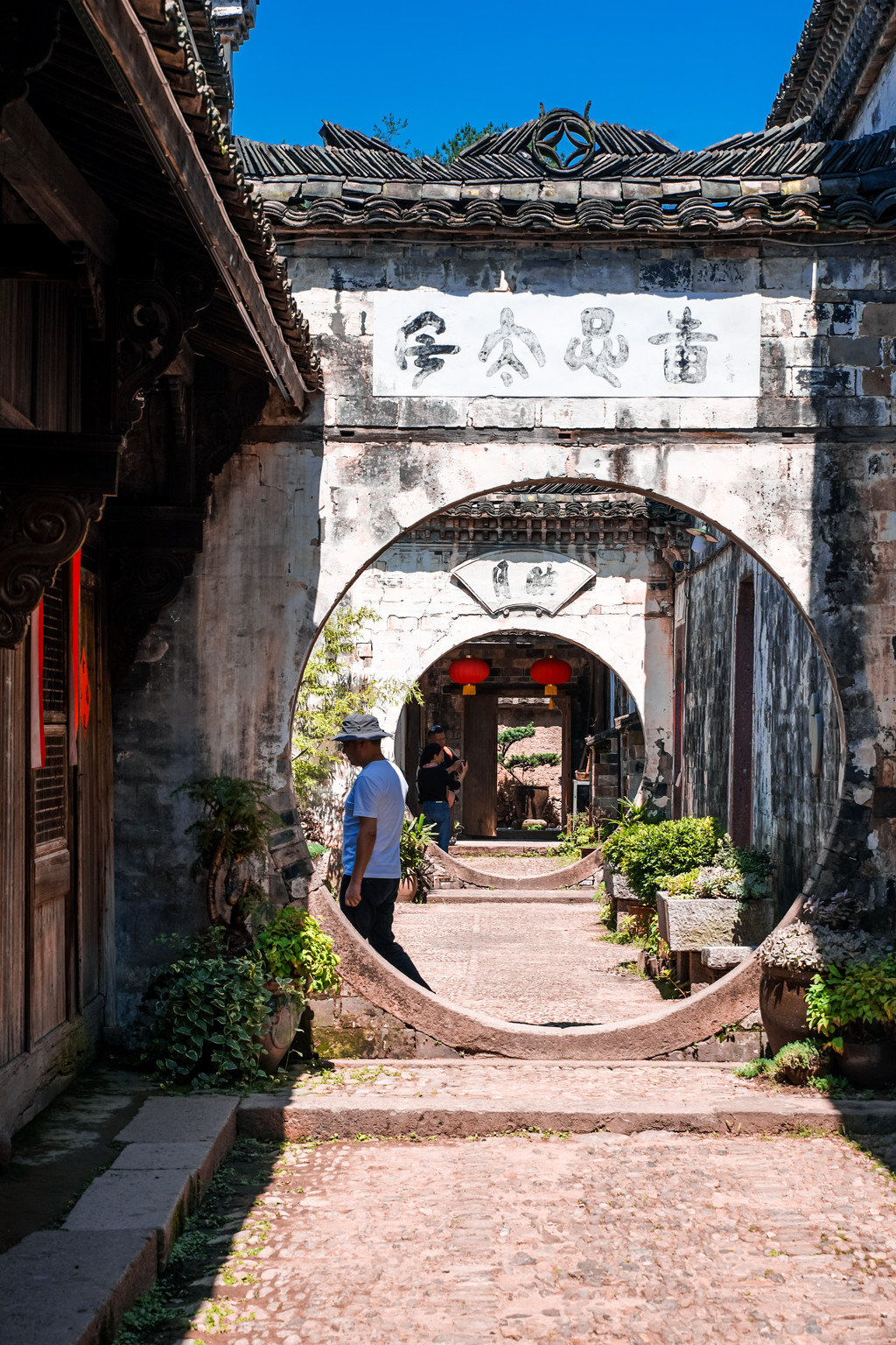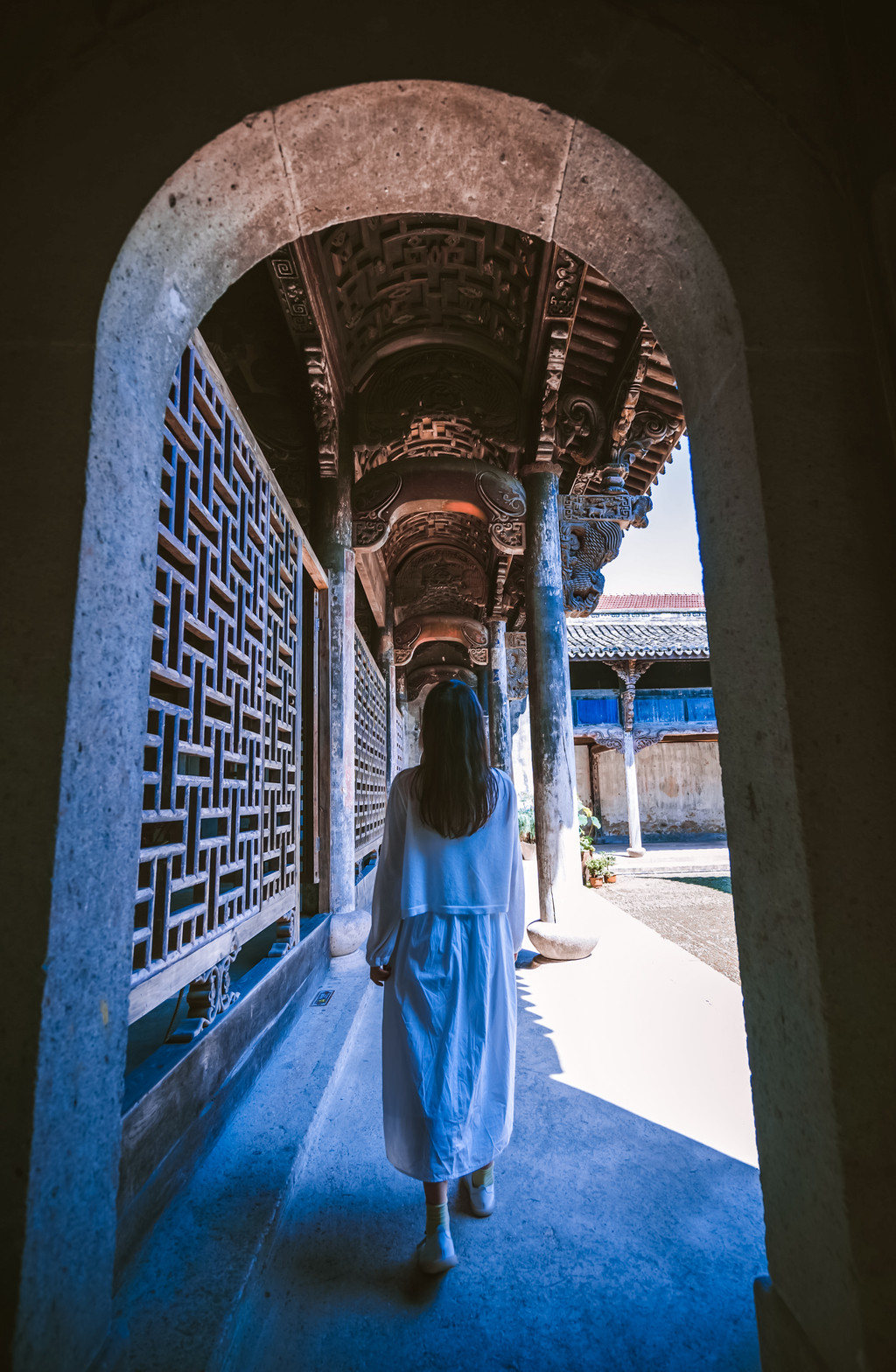 有的古宅第门前筑有像这样的“圆洞门”。通过框景式的洞门,营造景中有景、移步换景的氛围感。