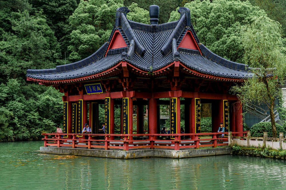 鼎湖峰被大家誉为“天下第一笋”,其外观就像是一根巨大的竹笋拔地而起,整体高度达到了170米,底部占地面积高达2787平方米;最为神奇的是在鼎湖峰顶部700来平方米的范围之中,还有一个小湖藏于松柏之下,大家利用航拍器或爬到内侧山峰观景亭上即可看见,唐代大诗人白居易曾写下“有时风激鼎湖浪,散作晴天雨点来”的诗句,来描绘这一天下奇观,有机会的话大家可能也会遇见诗句中的景象。