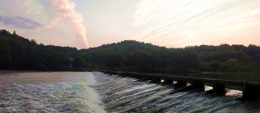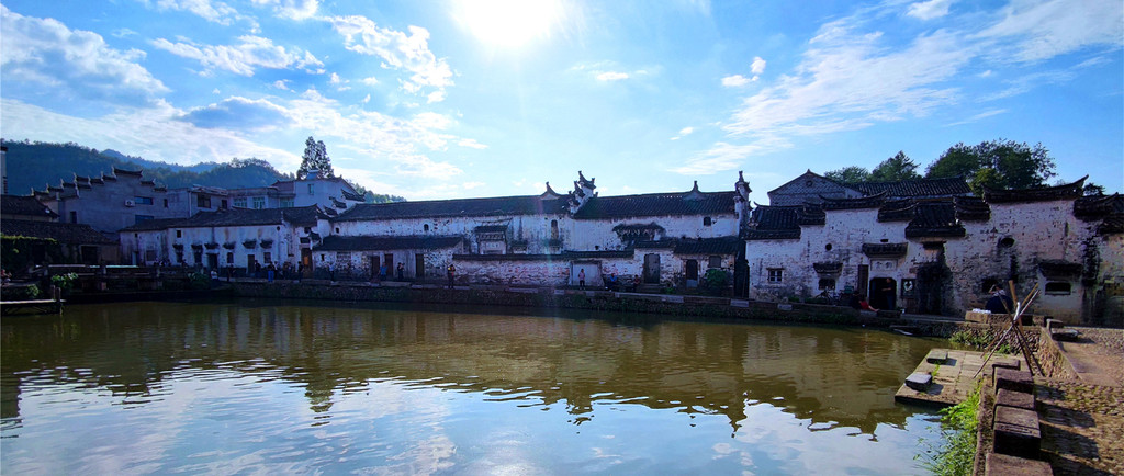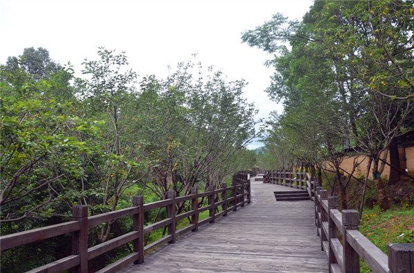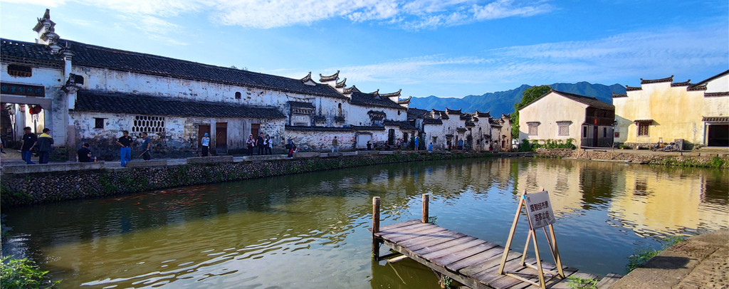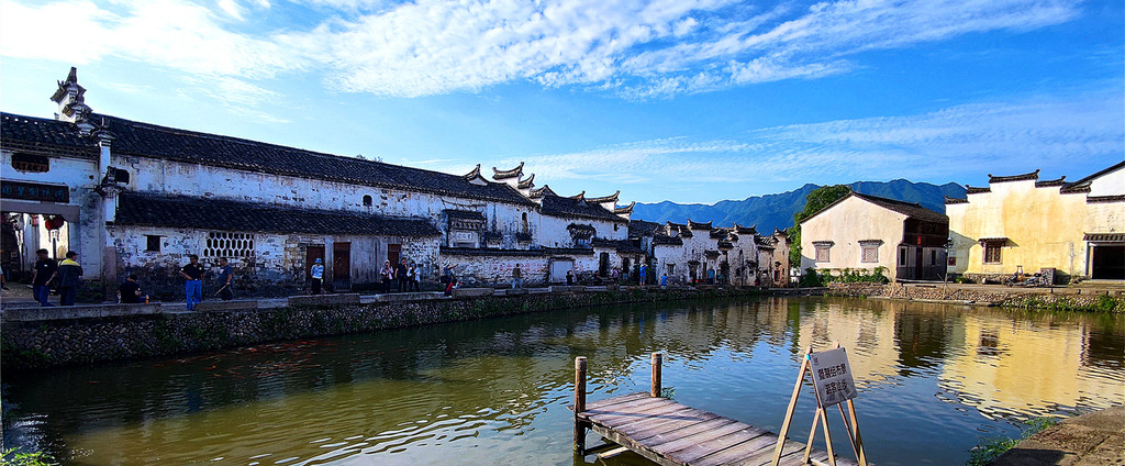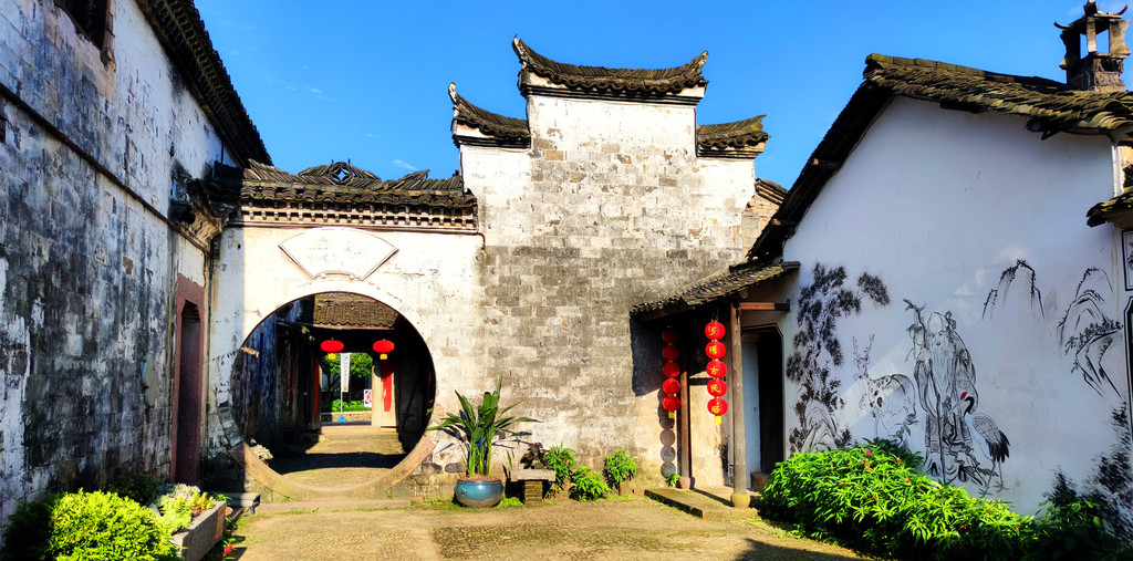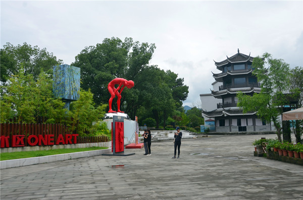 在画乡1号艺术区匆匆地拍了一张照离开,因为时间不早了,先去古堰景区.古堰门票+船票50元/人,检票入园后先坐船5~6分钟后靠岸,沿着指路牌前行,逆时针转一圈,不走回头路,公园内自然景色美丽,有山有水有古民居,公园不大,转一圈一个半小时足矣.