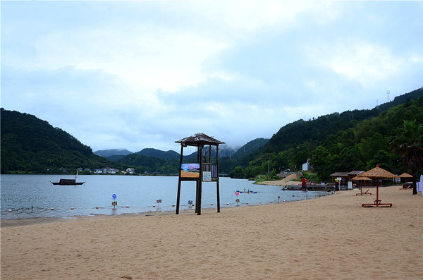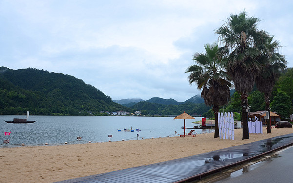第二天一早没有下雨,早饭后驱车前往今天要去的云和梯田,车行一半又开始下雨,前面山顶白雾茫茫,9点多到达云和梯田游客中心,工作人员诚实地告诉我,今天雨大雾大,肯定看不到梯田,劝我们别进景区,即使进去也看不到任何景色.工作人员这样说使我想起3年前去张家界旅游,没有下雨但是阴天,登上天门山山顶,除了雾,什么都没有看到,白跑一趟,今天必须吸取教训,云和梯田不去了.此时的心情非常沮丧,昨天跑到哪里那里下雨,是不是人品太差?一气之下跟LP说,这鬼天气到处下雨,我们先返回缙云,如果缙云还是下雨,我们就回家结束此行。调转车头驶向缙云,车行约半个多小时,雨神奇般地停了,看到前方一个路牌上书长汀沙滩景区,出门已经20多个小时,还没有进入过景区,去这个沙滩看看吧.进沙滩有栏杆拦住,私家车半小时内免费.长汀沙滩很小,因为还未到纳凉季节,沙滩上一个人没有,拍一些照片,时间控制在半小时内离开.
