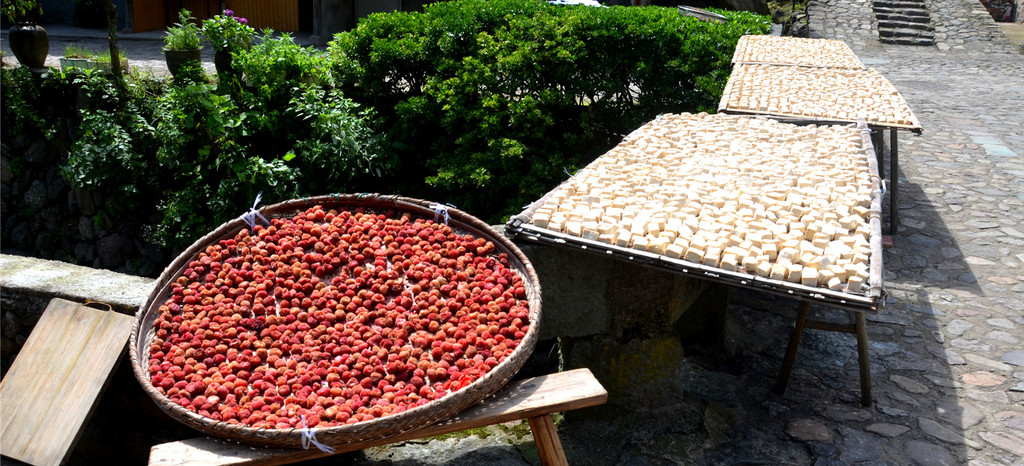 石头村深藏大山之中,是我到过的比较特别的古村落,村庄虽然不大,但村里的所有住宅都是用石头砌就,是名副其实的石头村.小车在山里转了无数个急转弯,约一个小时后到达石头村.目前该村正在开发旅游,也有一些旅行团队前来观光,向我这样的散客不多,所以村里还没有出现铜臭味,没有商业摊位,村里全部是原住民,唯一的商业或曰土特产就是一种酶豆腐,村民不会主动向您兜售,你如果自己对此感兴趣,可以问价购买,他们不会纠缠你,民风上好.