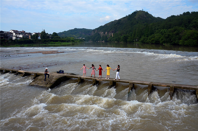古堰景区内最高潮的地方是通济堰,即古堰大坝,这个大坝距今已有1500多年的历史,全国重点文物保护单位。